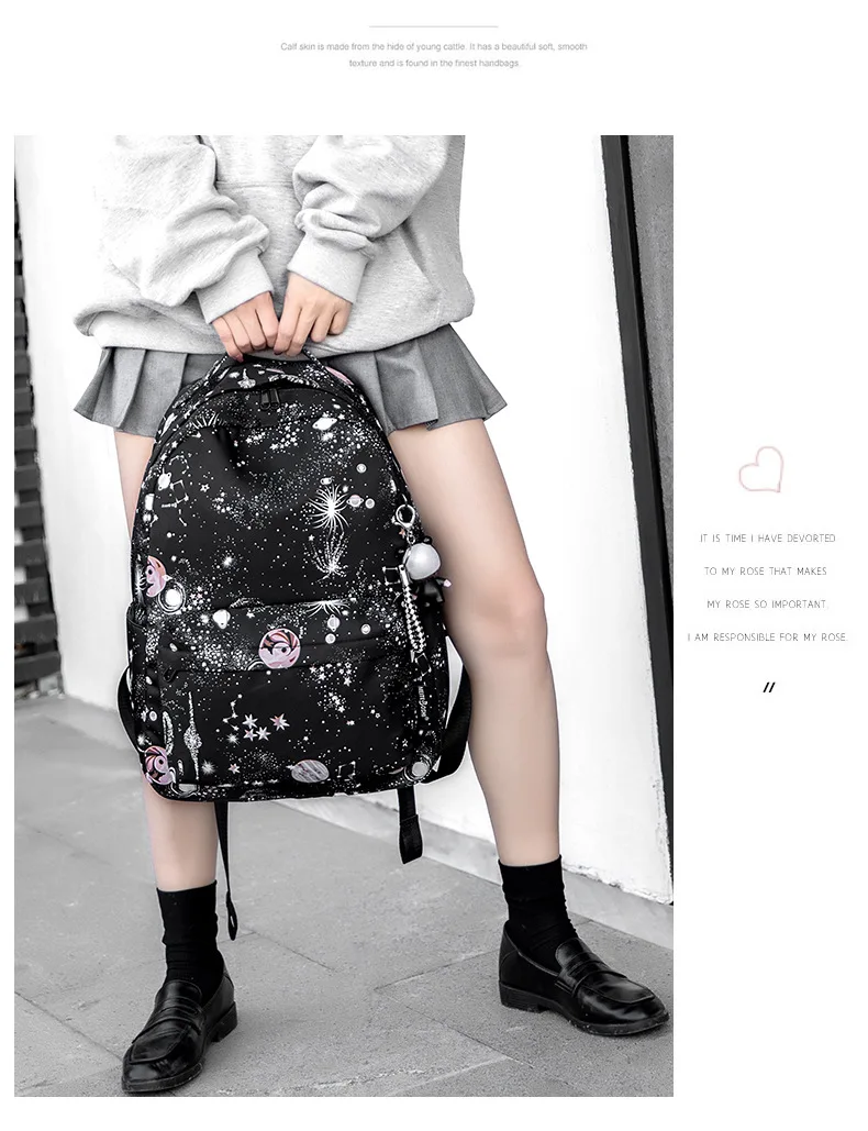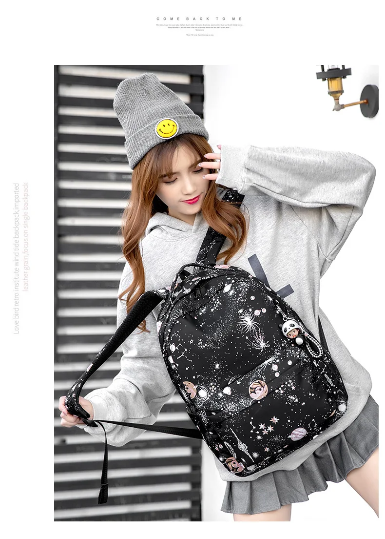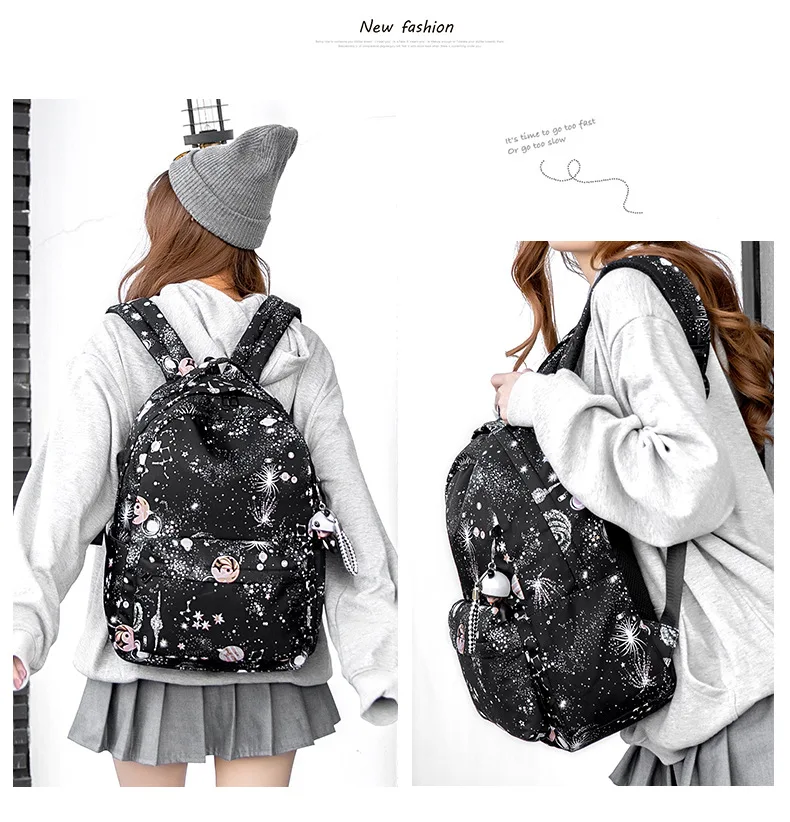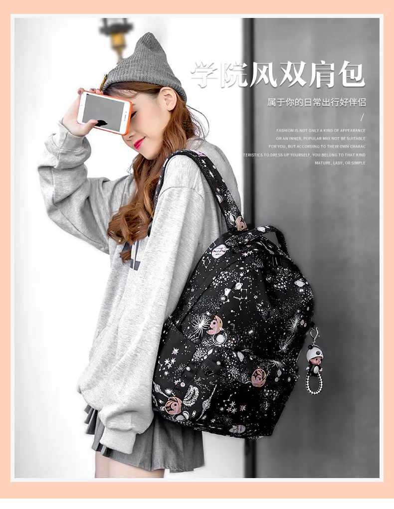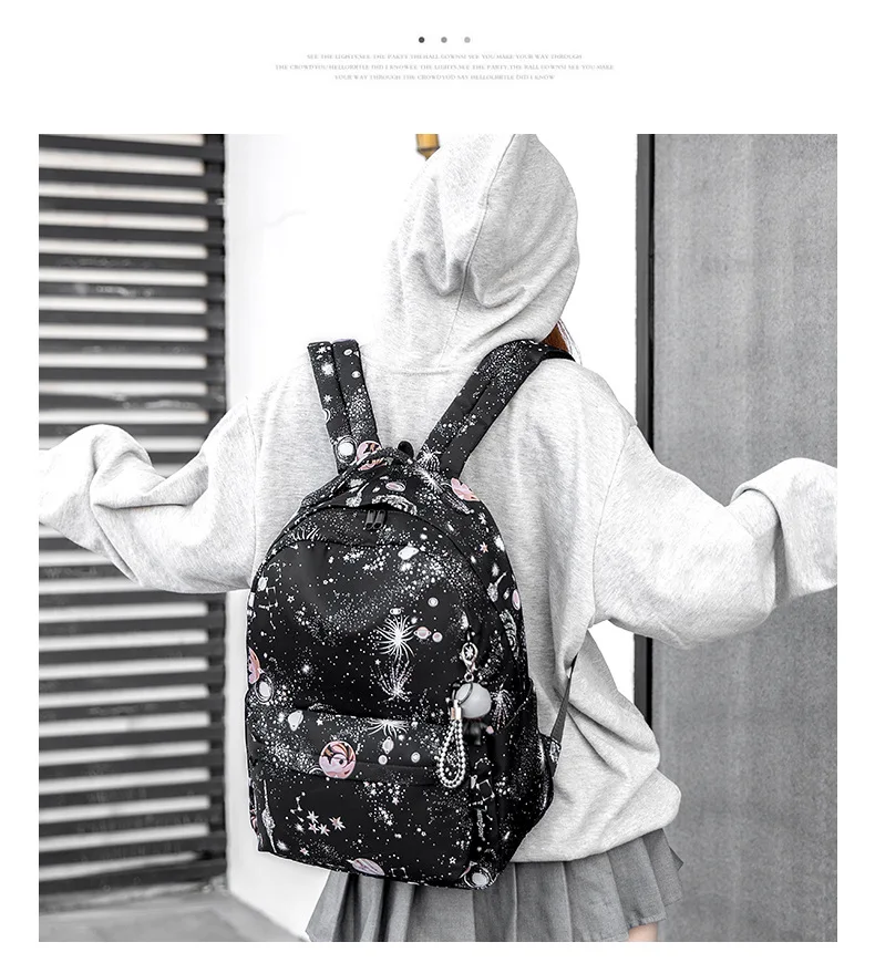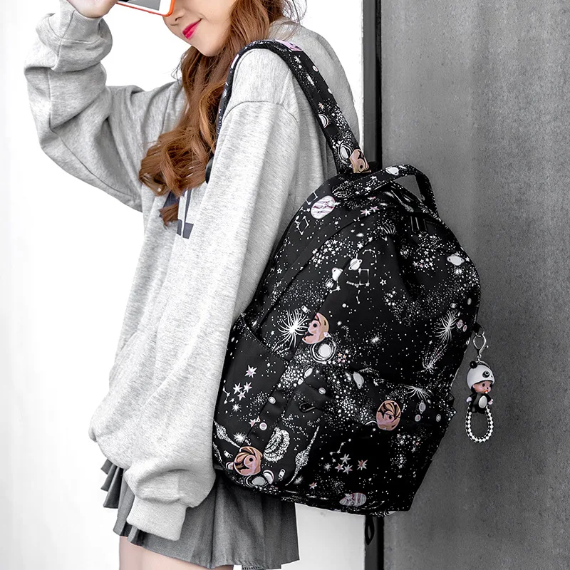 Fashion Women Star Print Backpacks Fashion Large Capacity Backpack Nylon Waterproof Travel Bags Schoolbag Solid Color School Bag