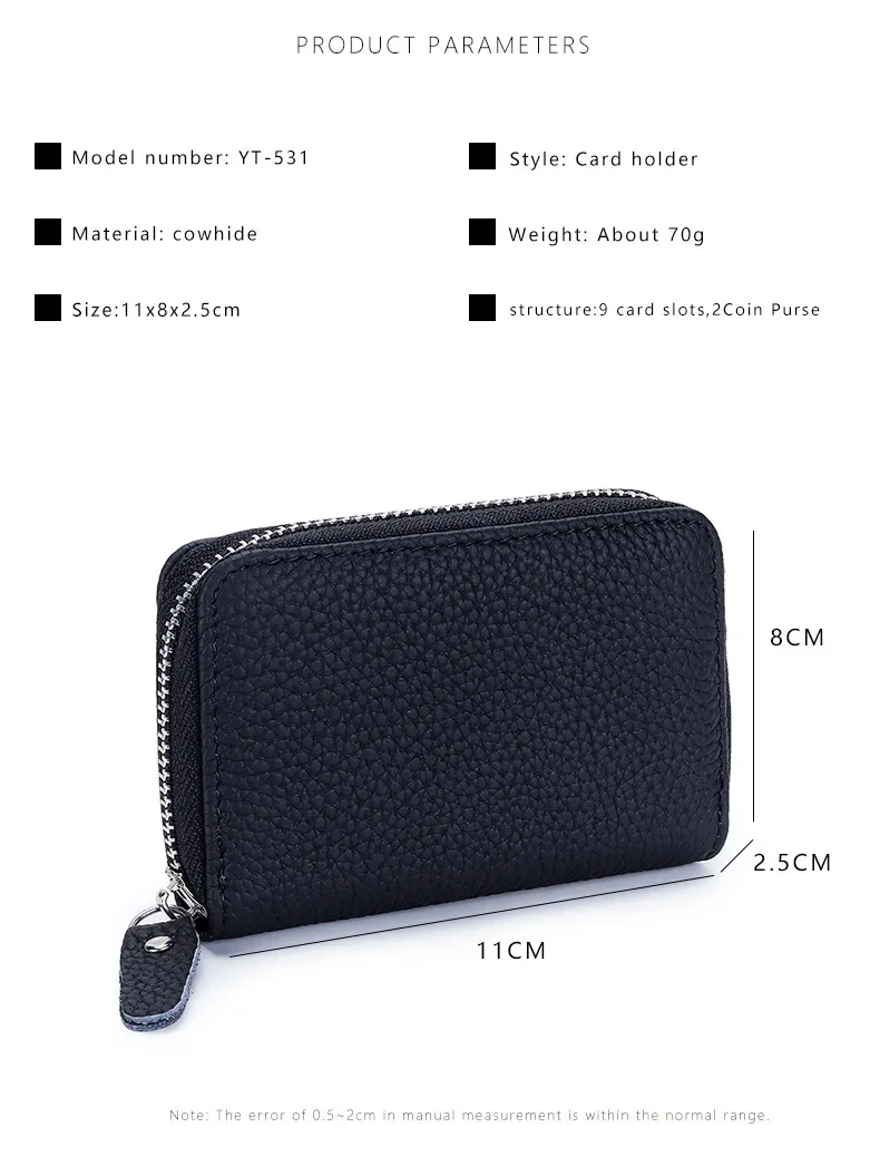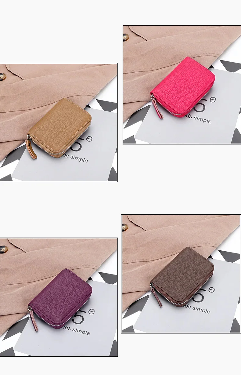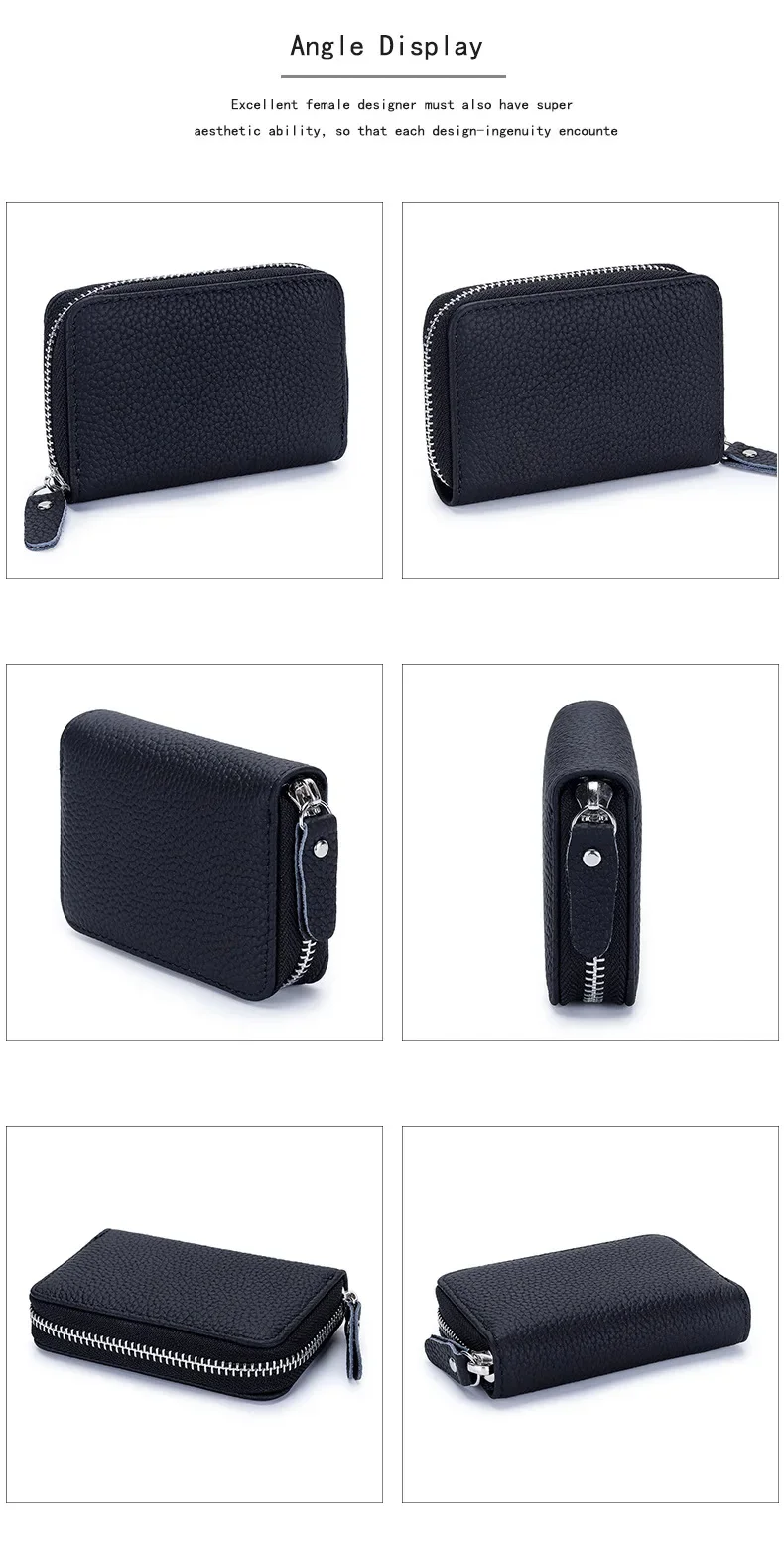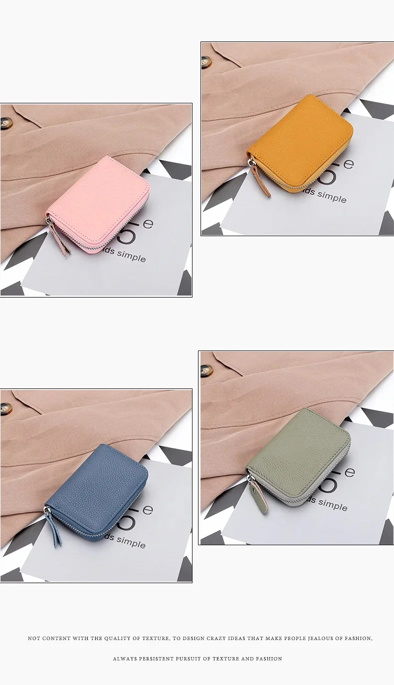 First Layer Cowhide Organ Multi-card Bag Women's Set Large Lizi Zipper Coin Purse ID Cover Card Clip