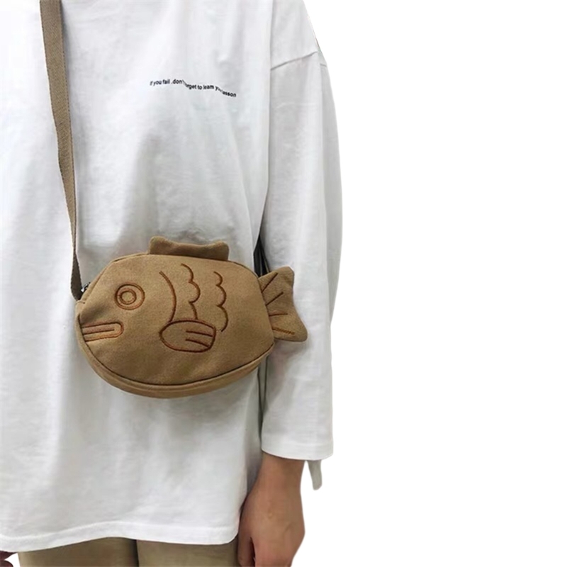 This crossbody bag features a fish designs, which unique and interesting. With its simple and fashionable designs style, it can perfectly matchs various clothing and occasions.