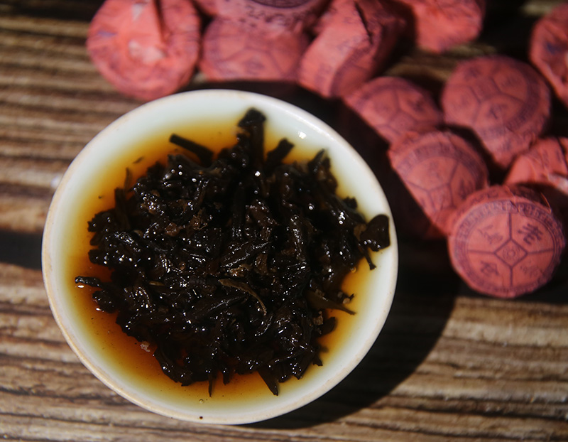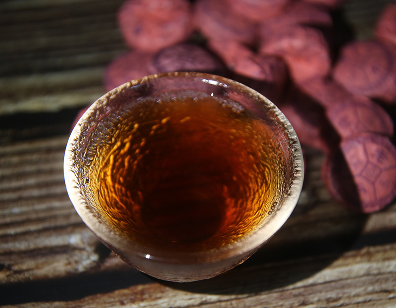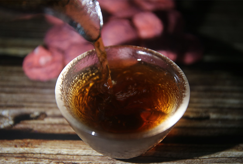 Aroma: Light rose aroma, fragrance of aging puer tea