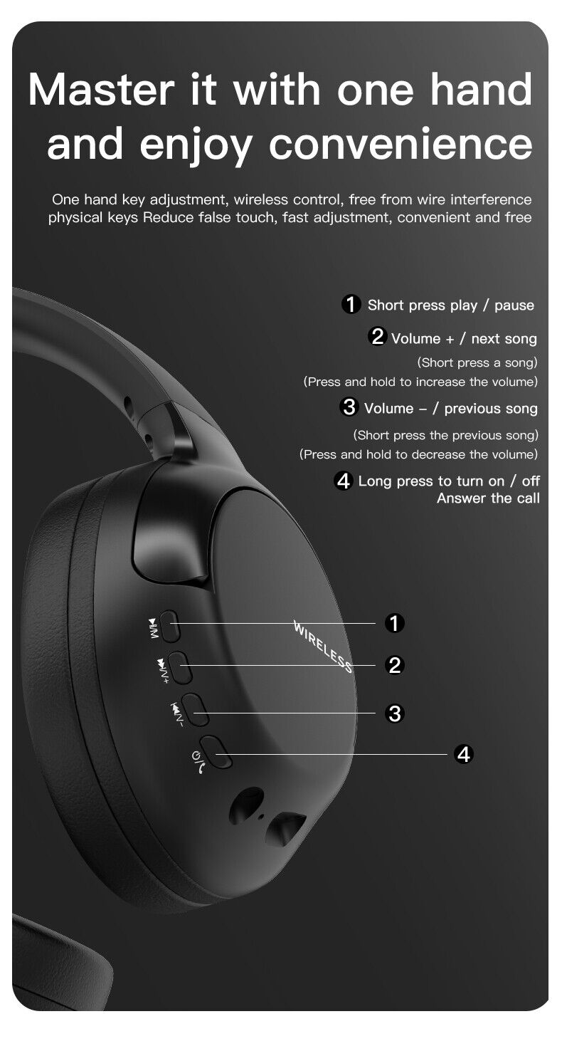 --Wireless headphones use BT V5.1 technology, delivering high speed and stable transmission.