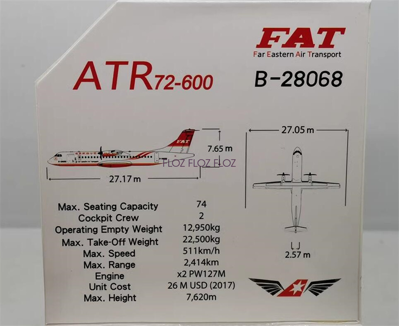 for ALBATROS FAT Far Eastern Air Transport ATR-72-600 B-28068 1:400 Aircraft Pre-built Model
