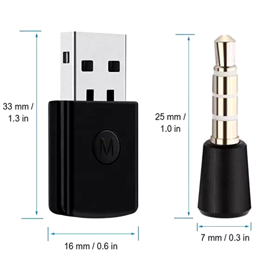 Specification: Use for: PS4 Compatible:ANY Bluetooth Headsets Working Voltage:5.0V Output Power:0 ~ +4dBm Frequency Band:2.4G ISM Bluetooth Version:4.0+EDR Transmission Range:33 Feet (10 Meters) Dimensions: approx 3.3cm x 1.6cm x 0.8cm