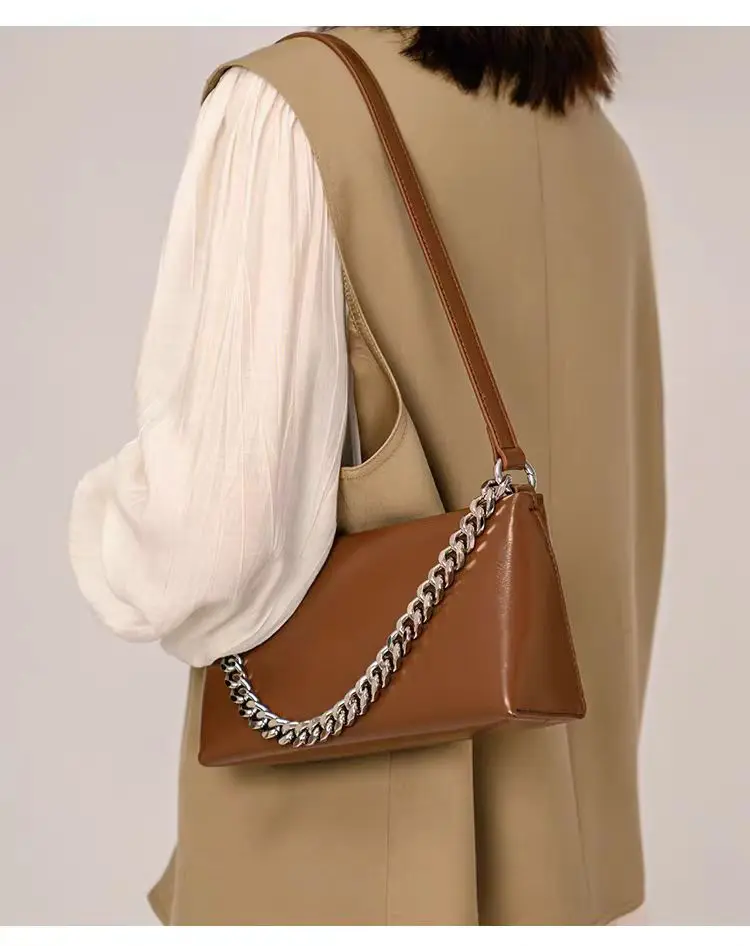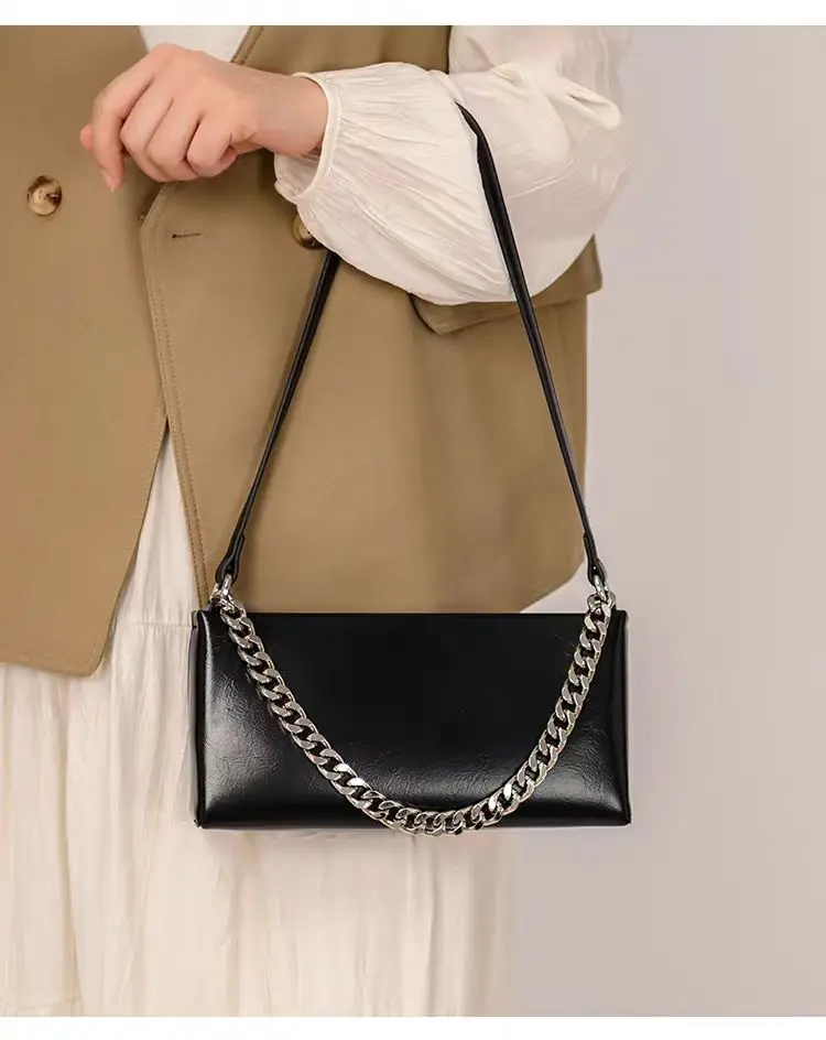 French Chain Armpit Bag for Women, Shoulder Bag, Niche Texture, Commuting Baguette, New, 2024