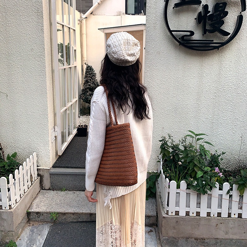 French Style Elegant Tote Shoulder Bag Vintage Woven Bags Women Fashion All-match Commuter Casual Handbags Female Bolsa