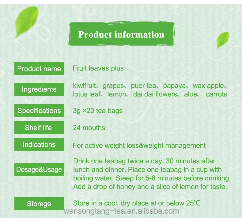 Fruit Leaves Plus Fruit Flavor Slimming Tea Hot Sale in Africa 3g*20 Bags