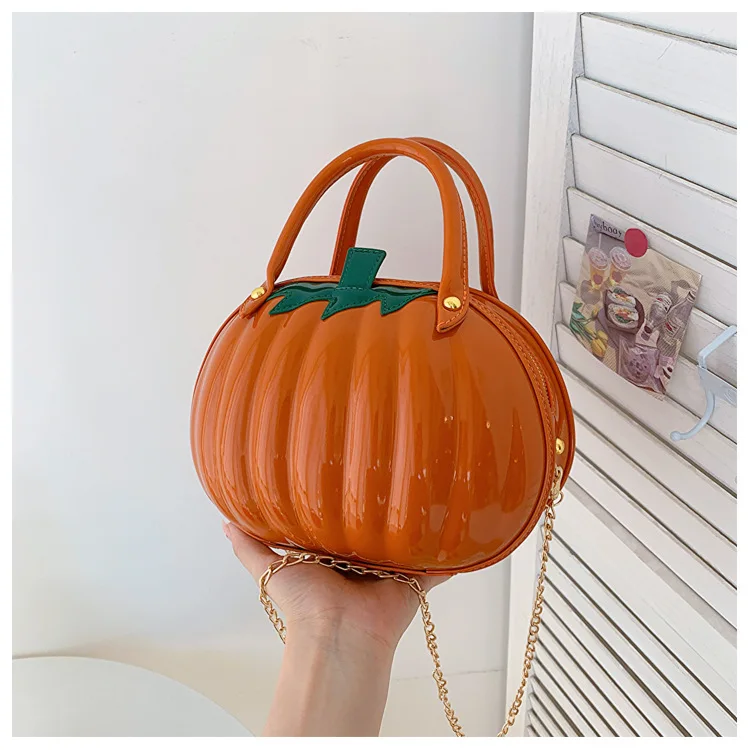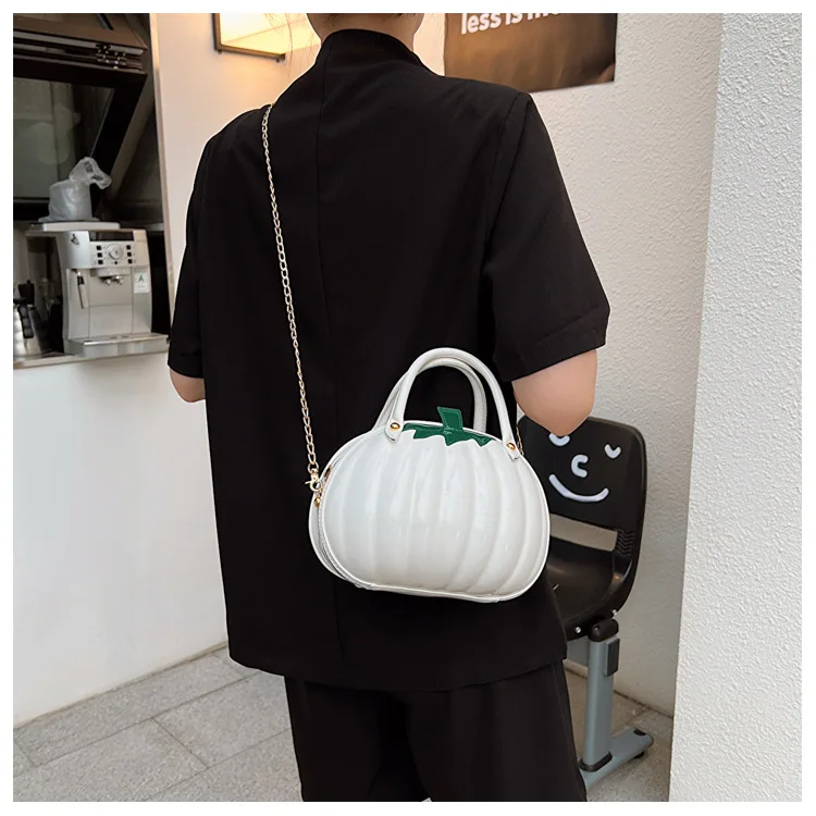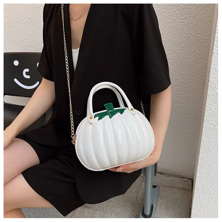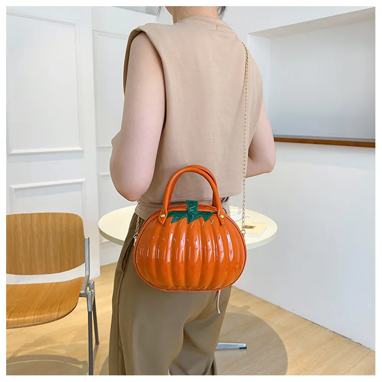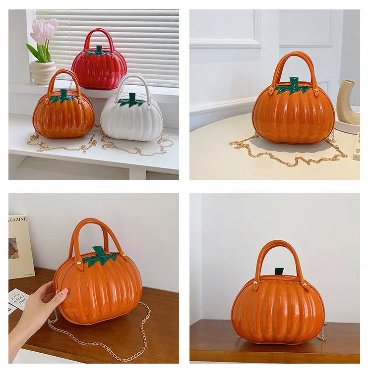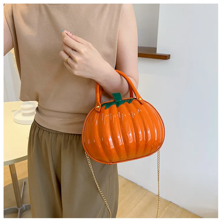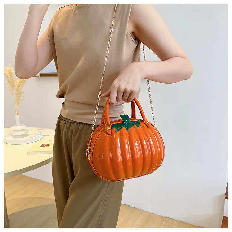 Funny Cute Pumpkin Shaped Women Handbags Creative Box Chains Shoulder Crossbody Bag Halloween Novelty Small Female Purses 2024