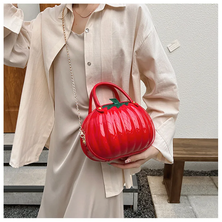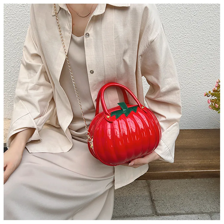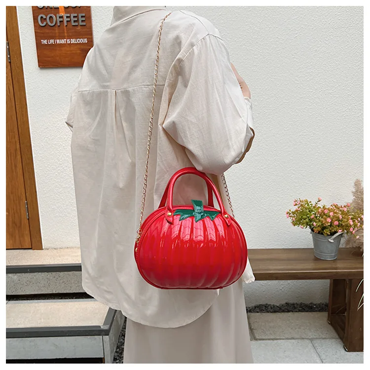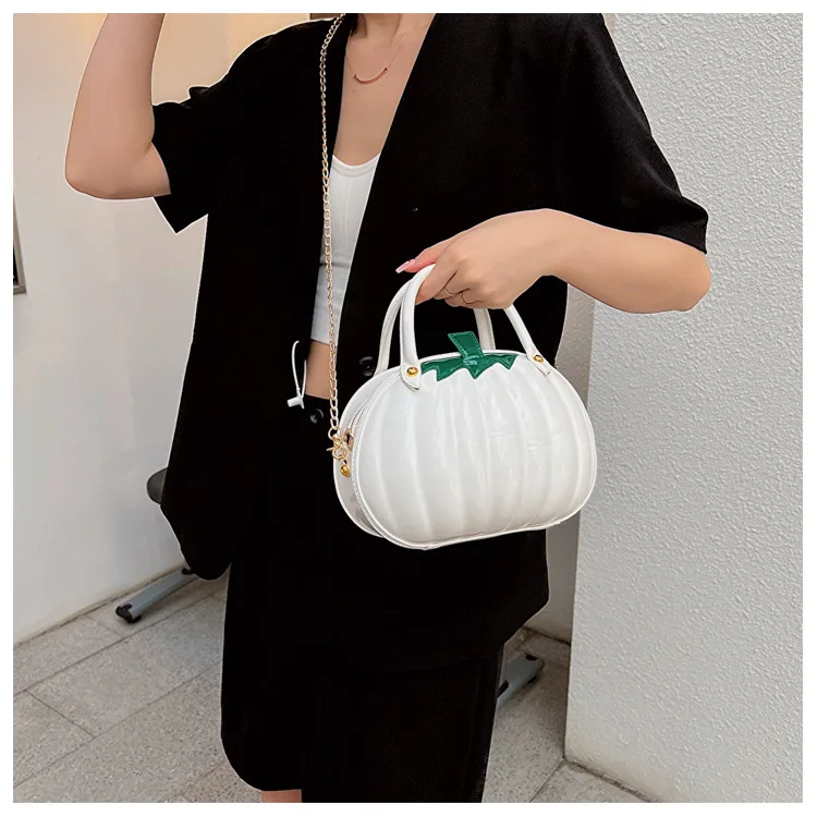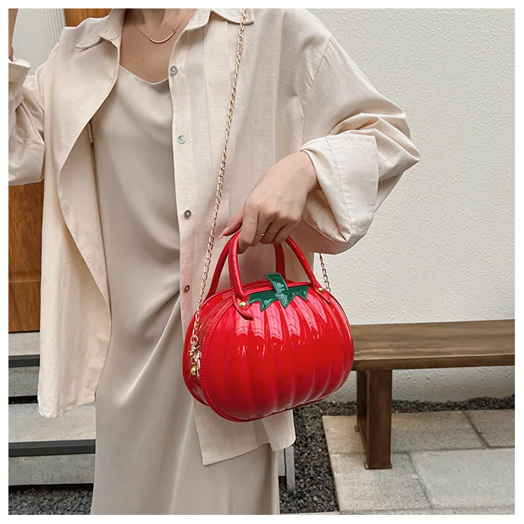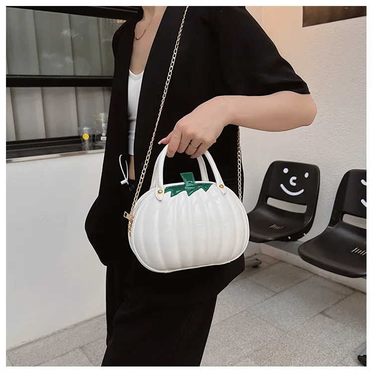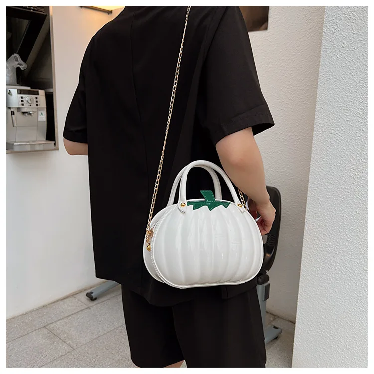 Funny Cute Pumpkin Shaped Women Handbags Creative Box Chains Shoulder Crossbody Bag Halloween Novelty Small Female Purses 2024