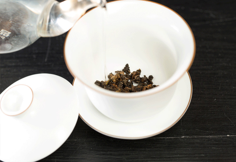 Tea leaves (Dried): This particular Oolong is dark and medium brown with a green tinge