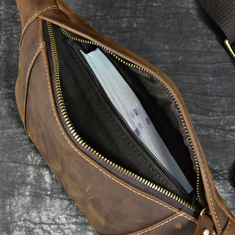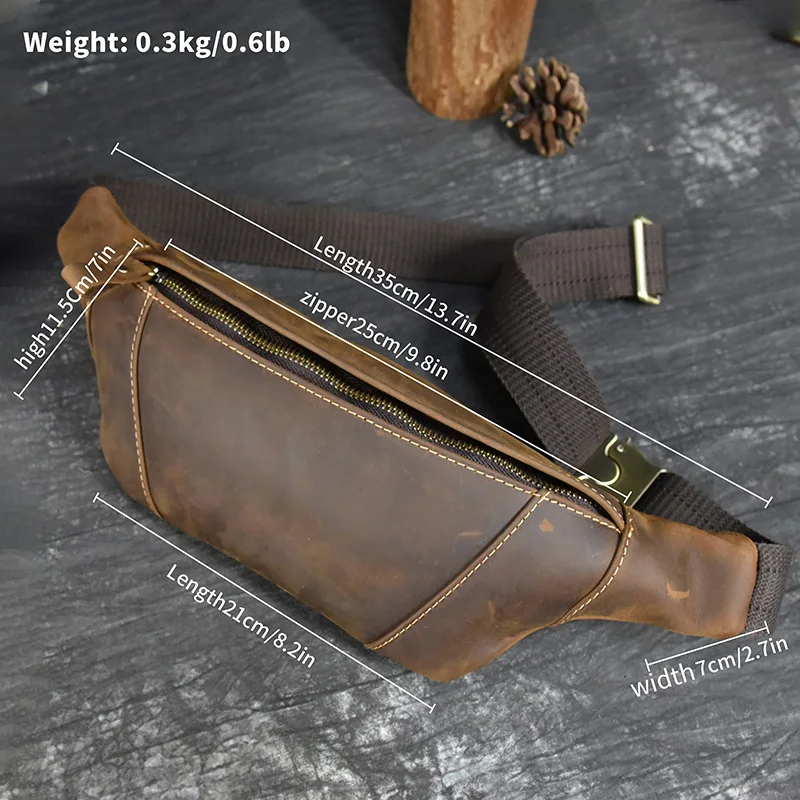 Material:Made of 100% Natural leather Color:Dark Brown,Brown Capacity: 14" Phone, short Wallet and so on Strap length:38-76cm 2 USE:Can be used as chest bag,waist pack