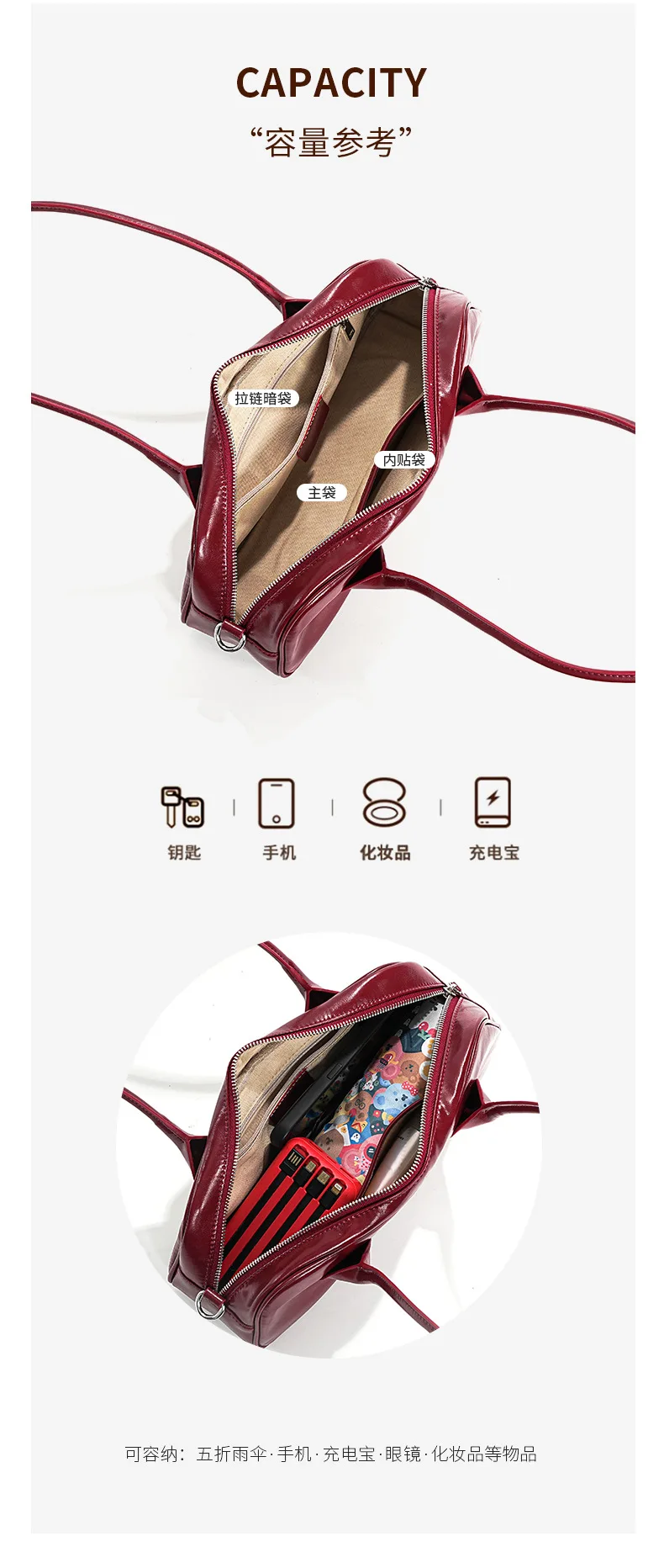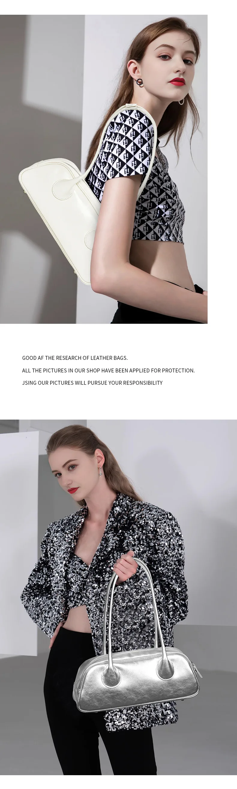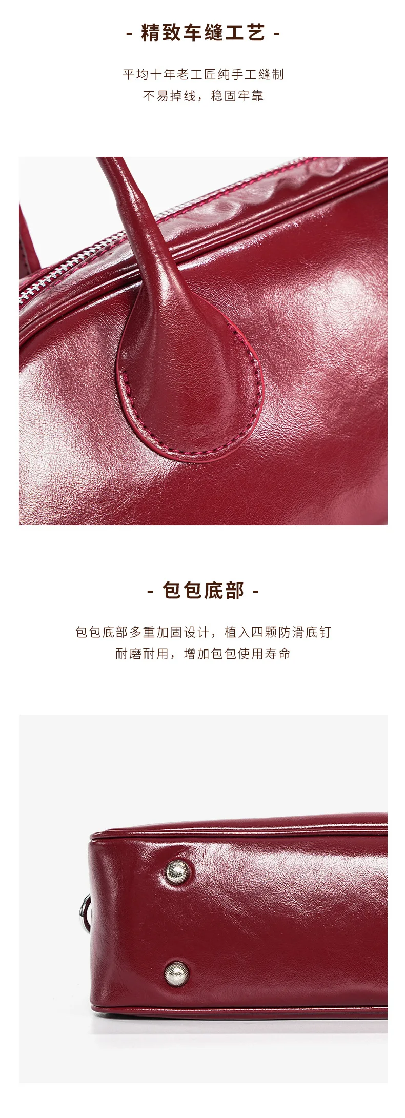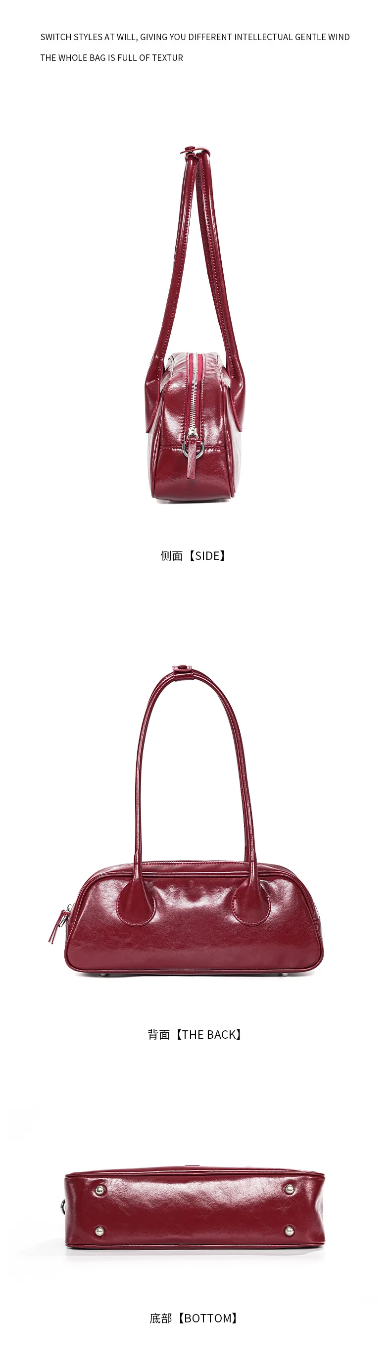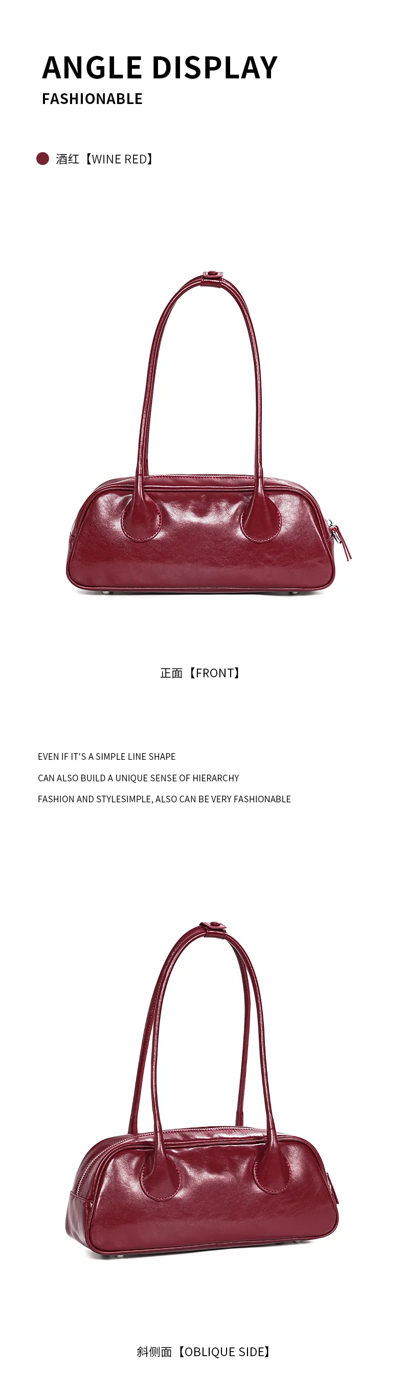 包包女新款小众时尚真皮保龄球腋下单肩包 牛皮大容量手提法棍包