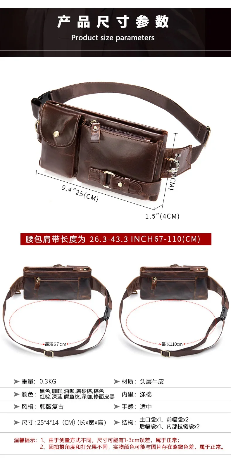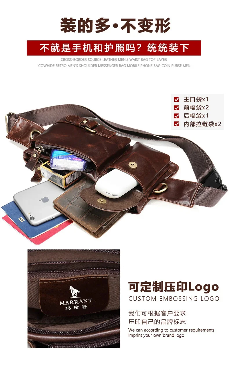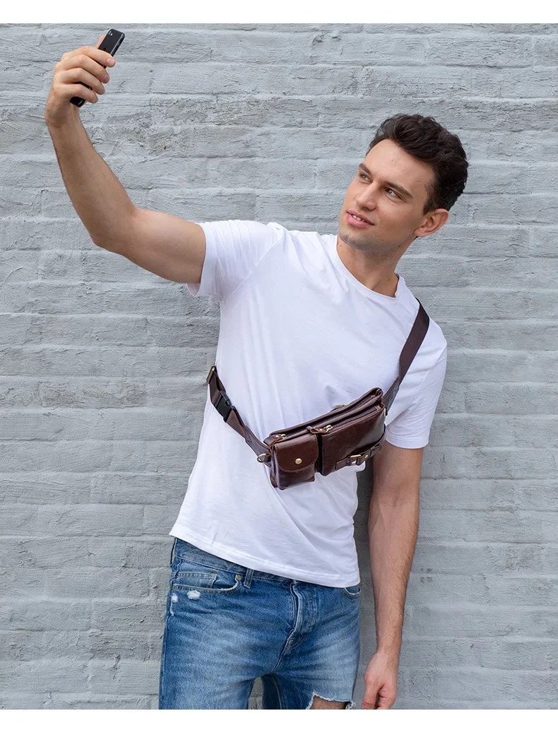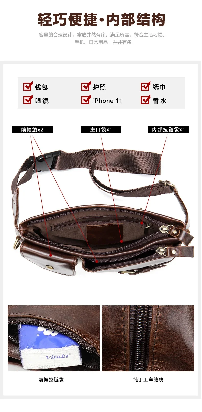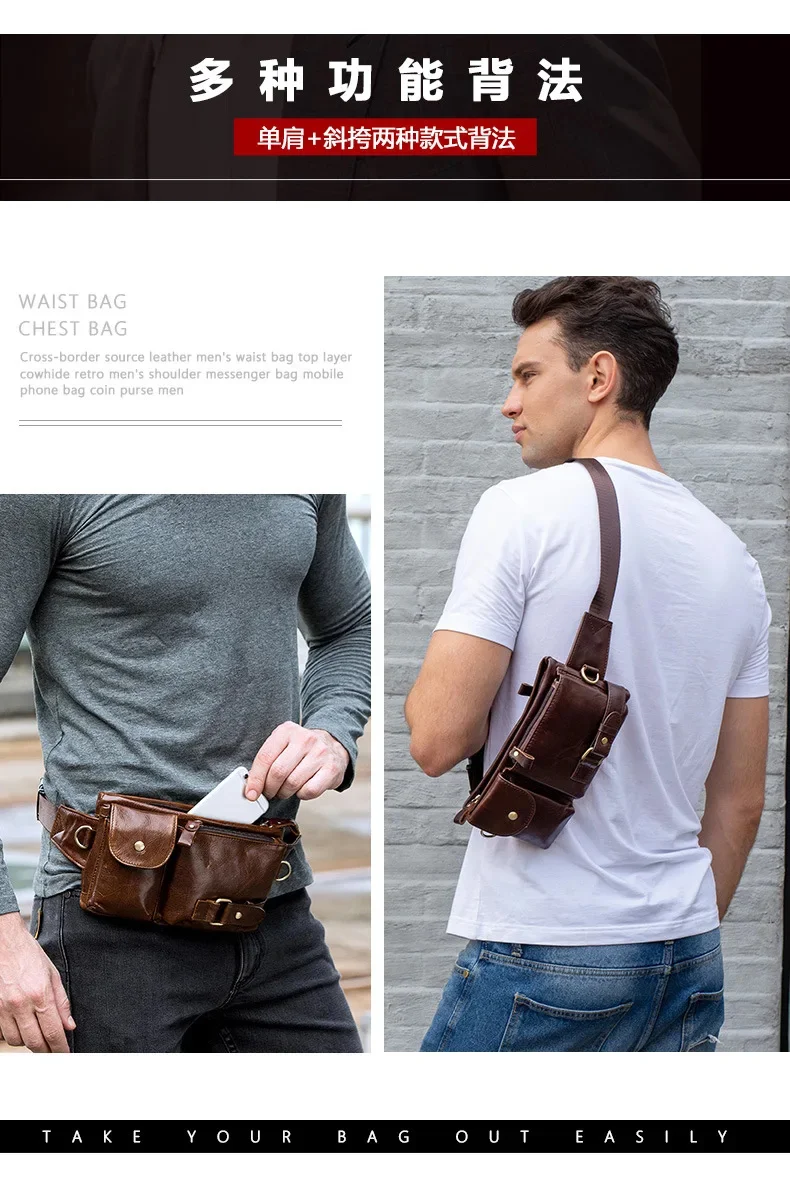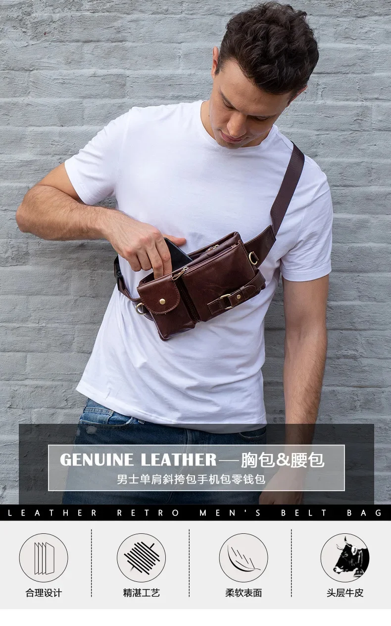 Genuine Leather Bag Men Casual Messenger Fashion Men's Chest Pack Business Bag's For Male Crossbody Bags