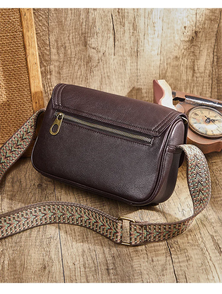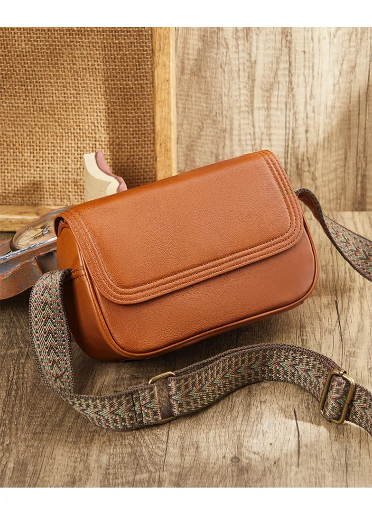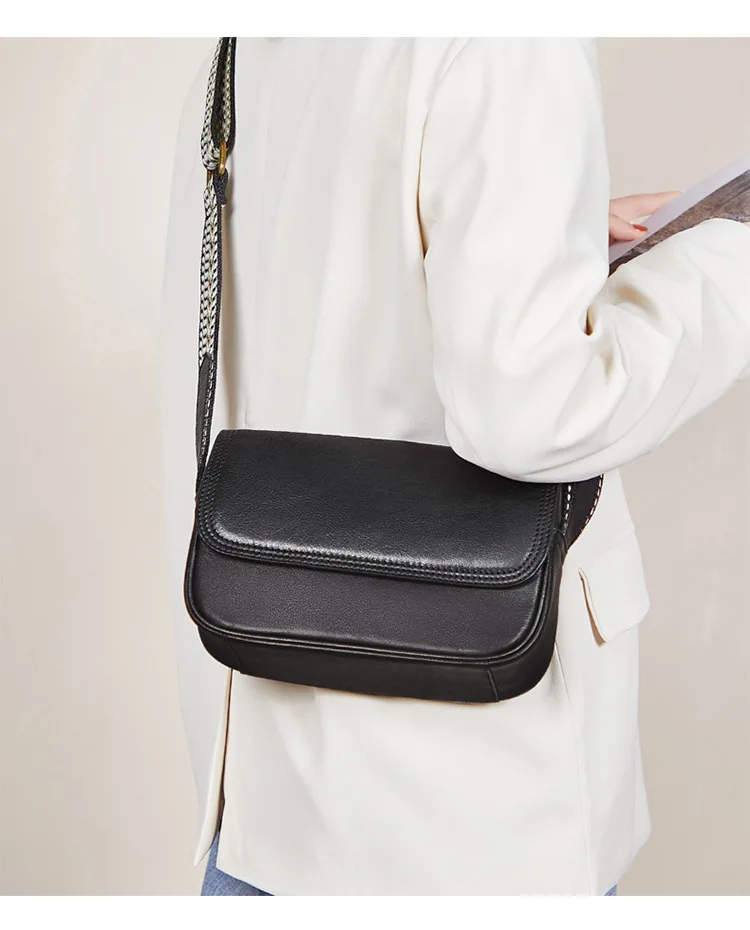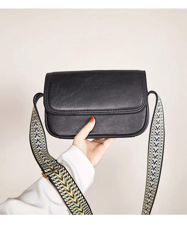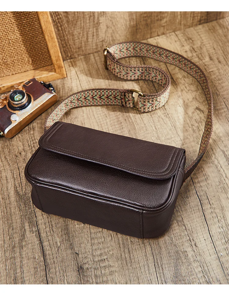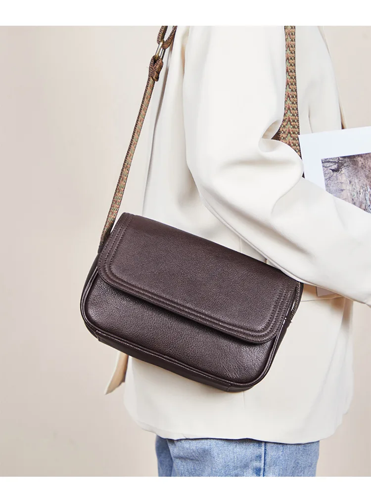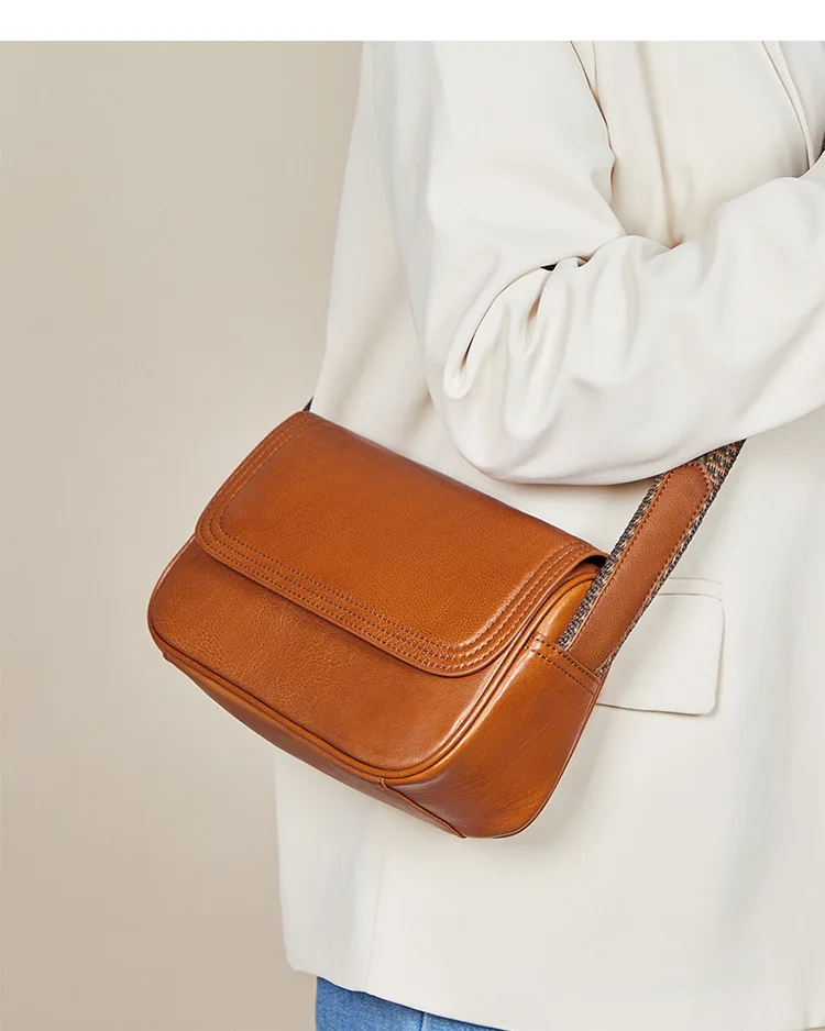 Genuine Leather Bag Women's 2023 New Versatile Retro Style Solid Color Cowhide Shoulder Bag Cross Body Bag Small Square Bag