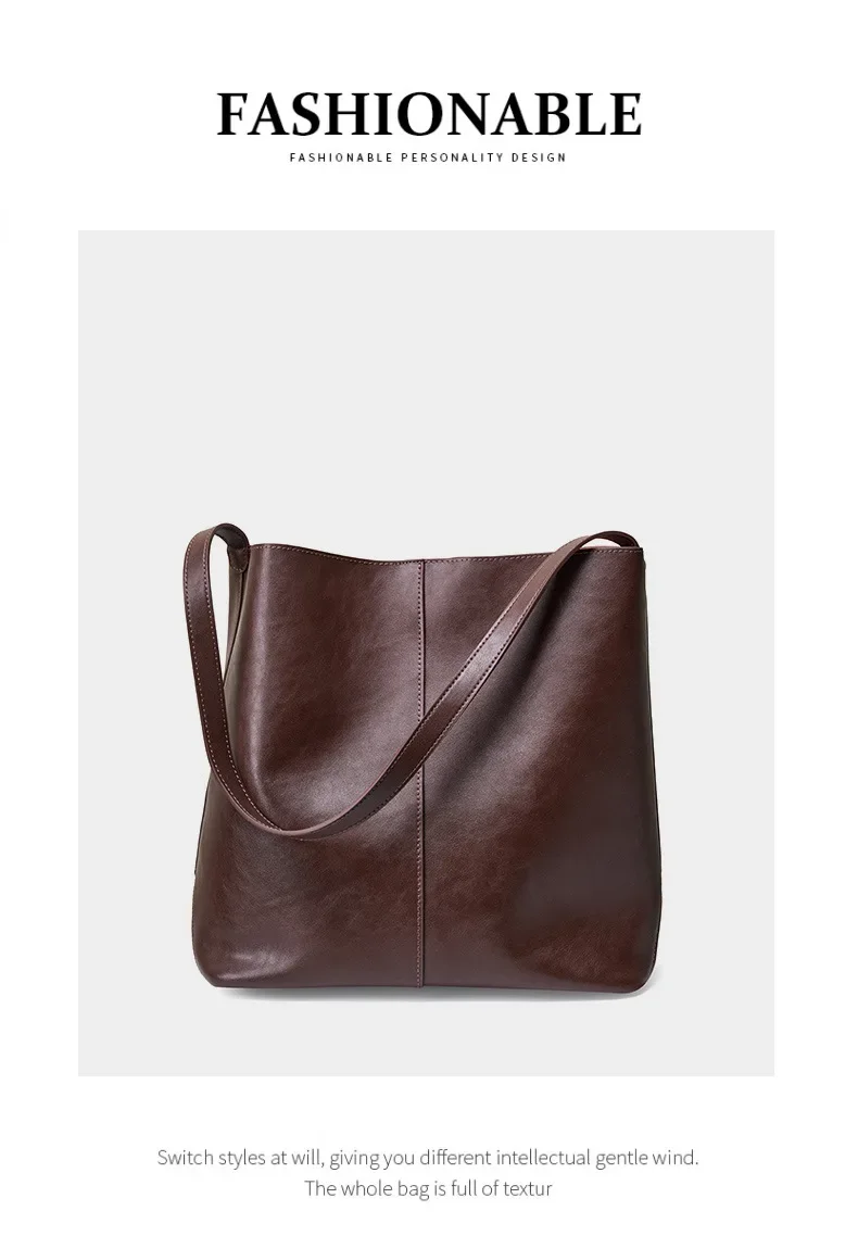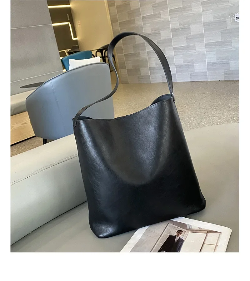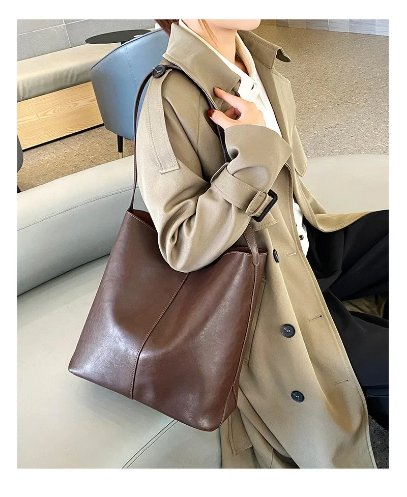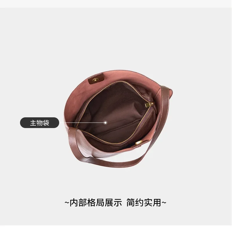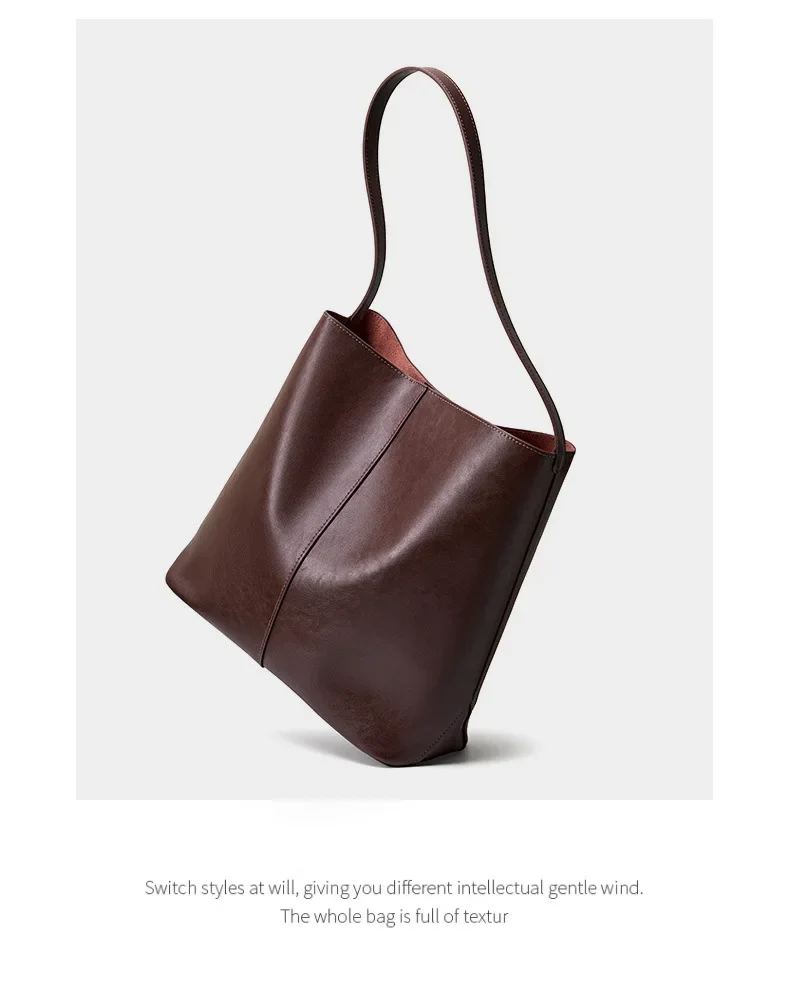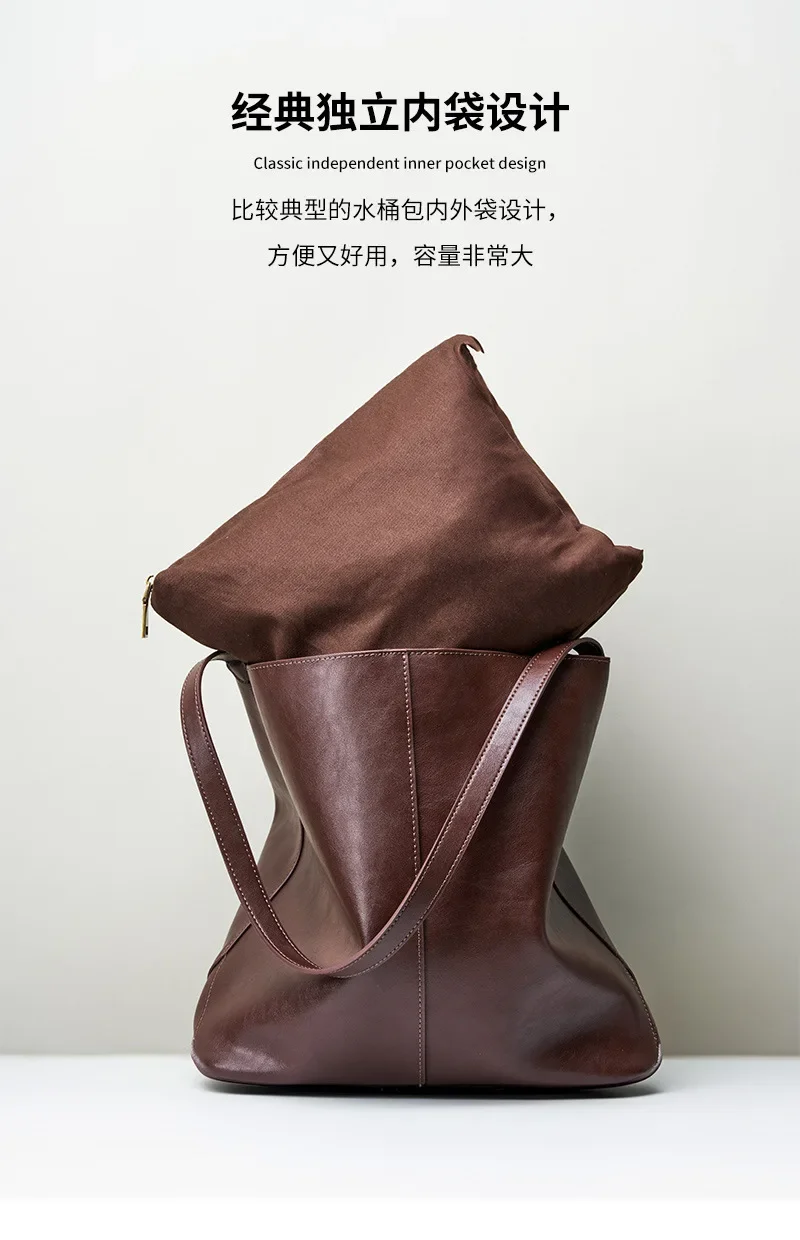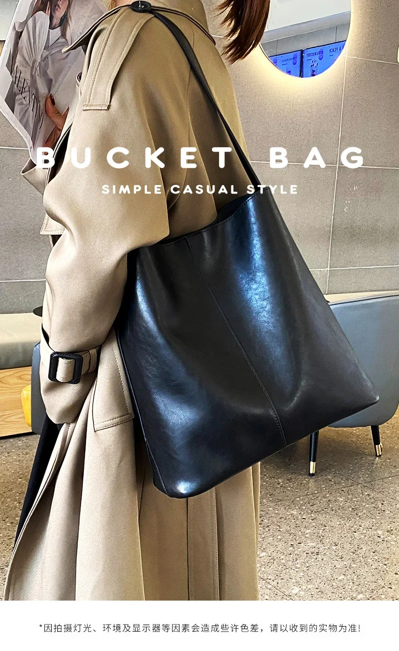 Genuine leather bucket bag, high-end niche tote bag, large capacity single shoulder crossbody bag, new for commuting in 2024