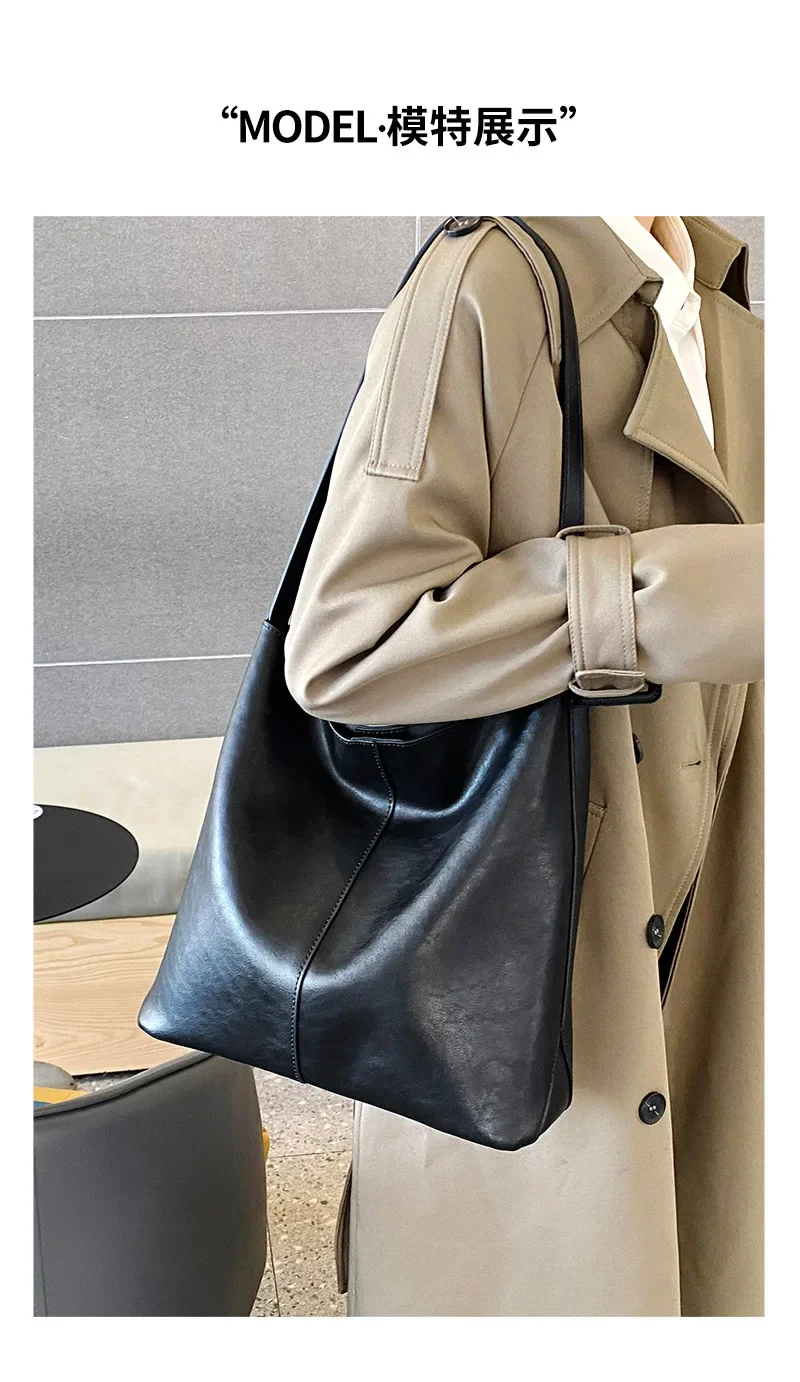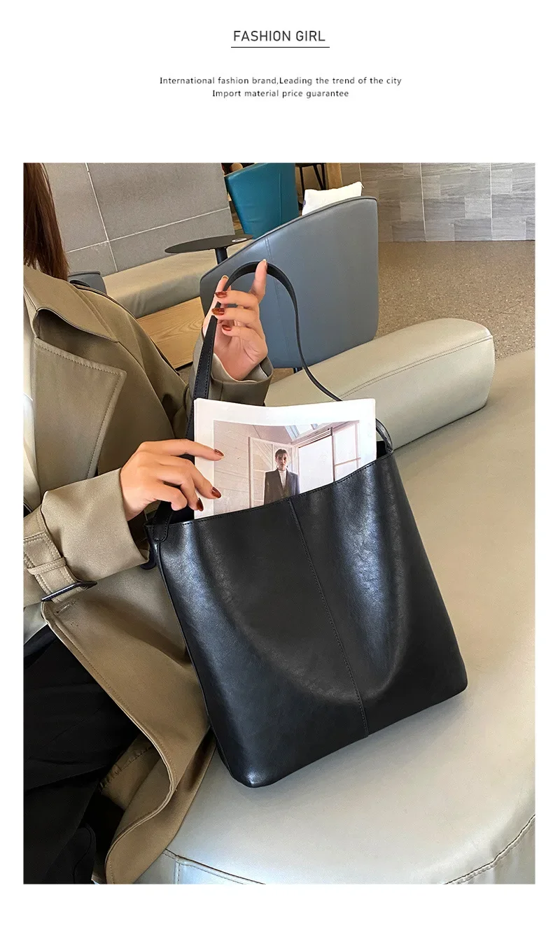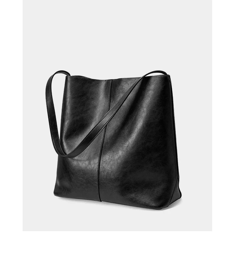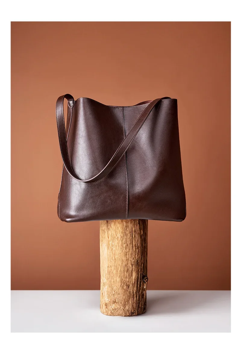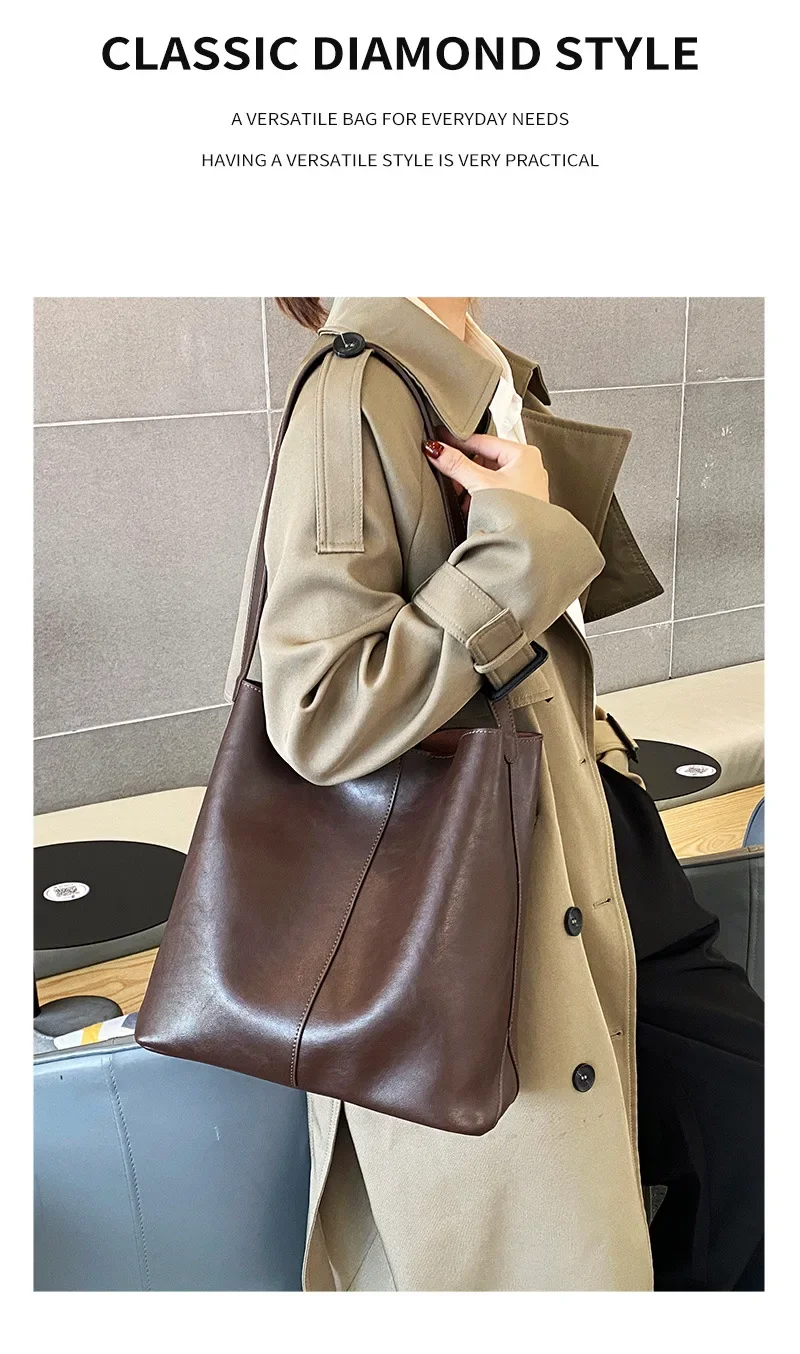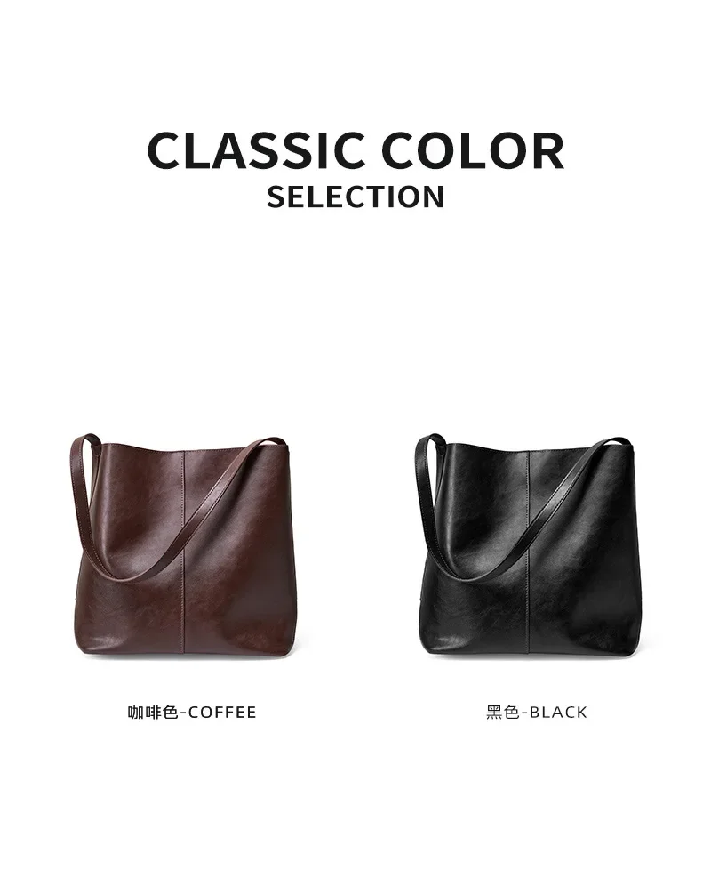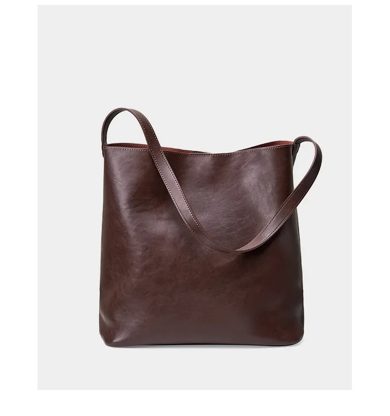 Genuine leather bucket bag, high-end niche tote bag, large capacity single shoulder crossbody bag, new for commuting in 2024