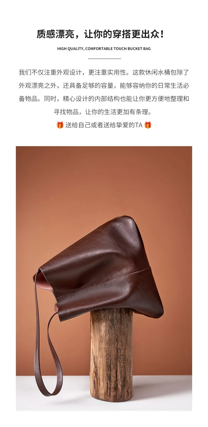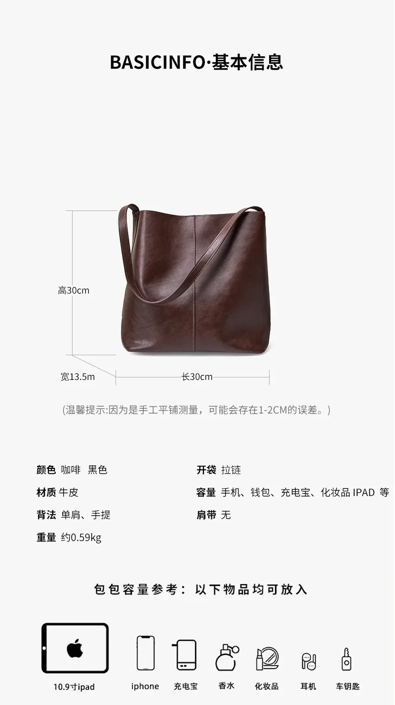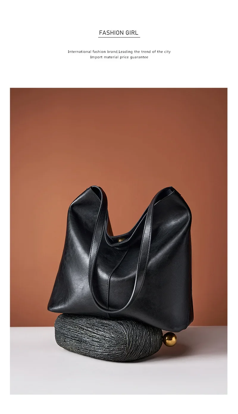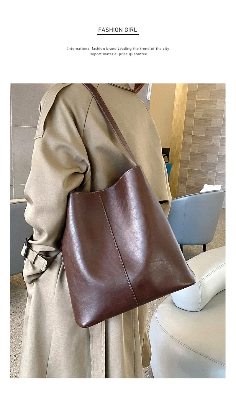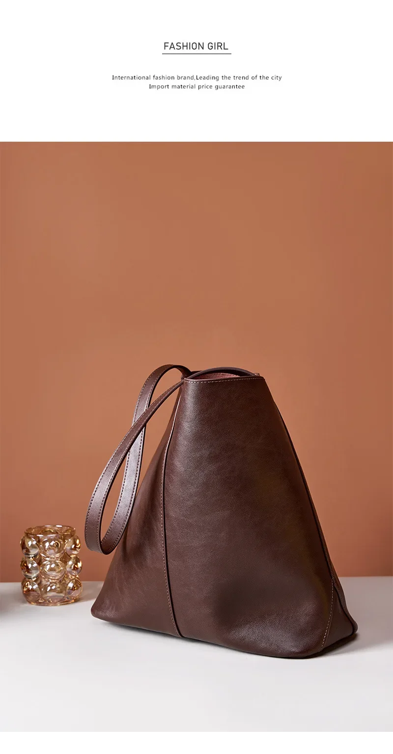Genuine leather bucket bag, high-end niche tote bag, large capacity single shoulder crossbody bag, new for commuting in 2024