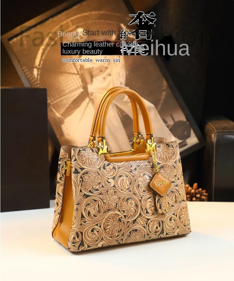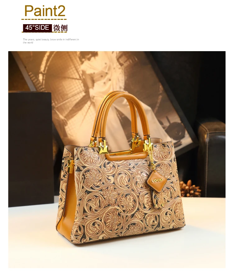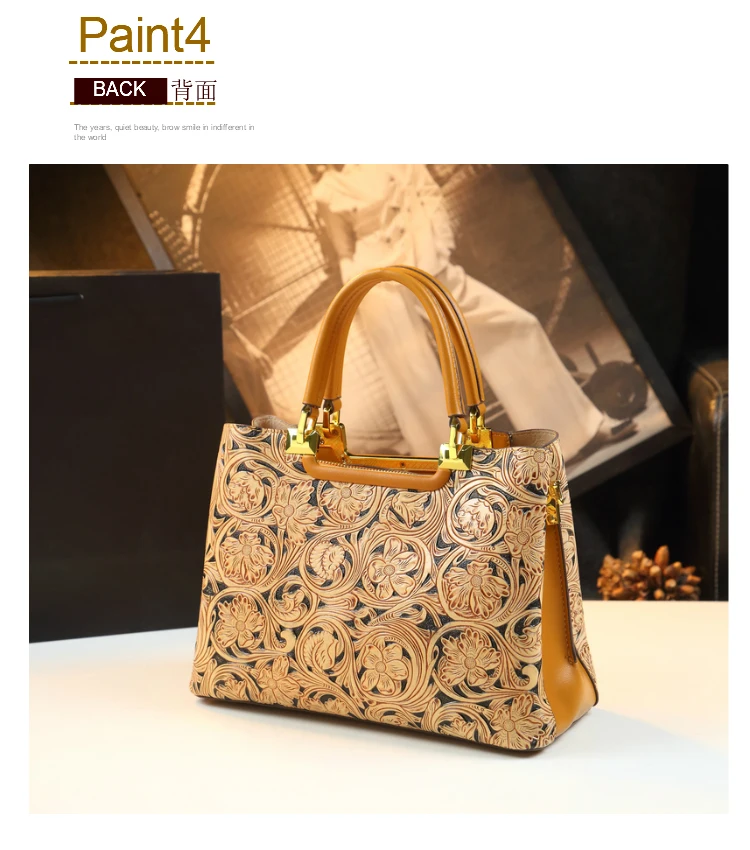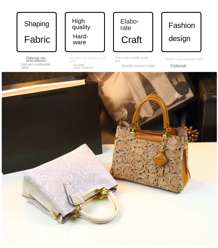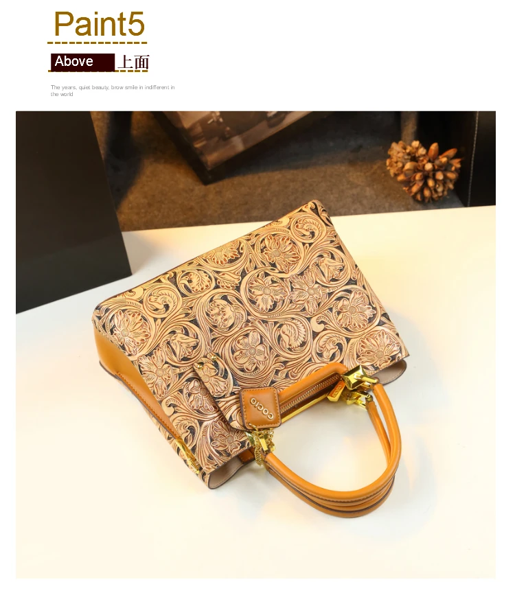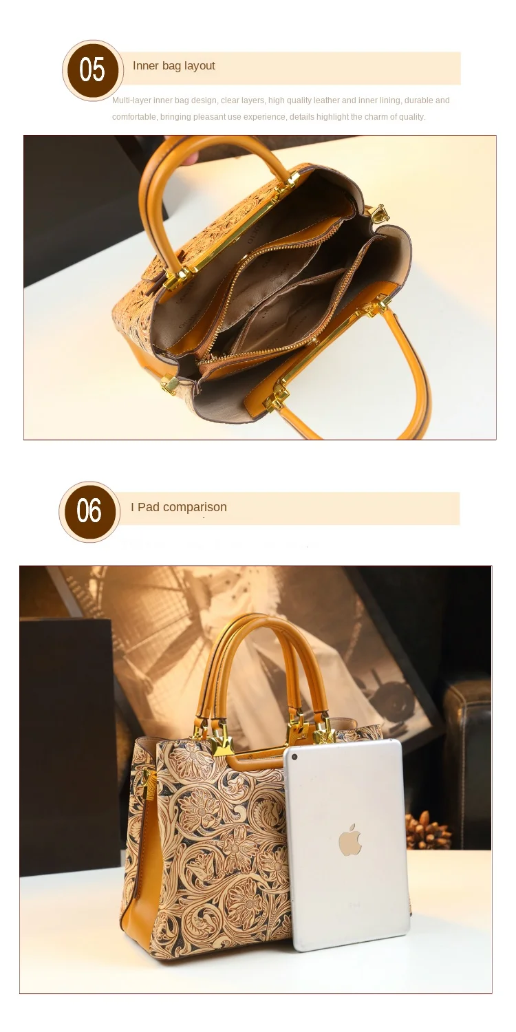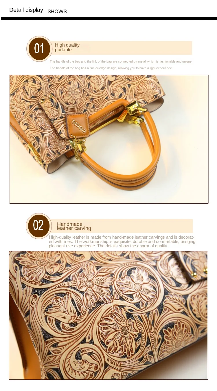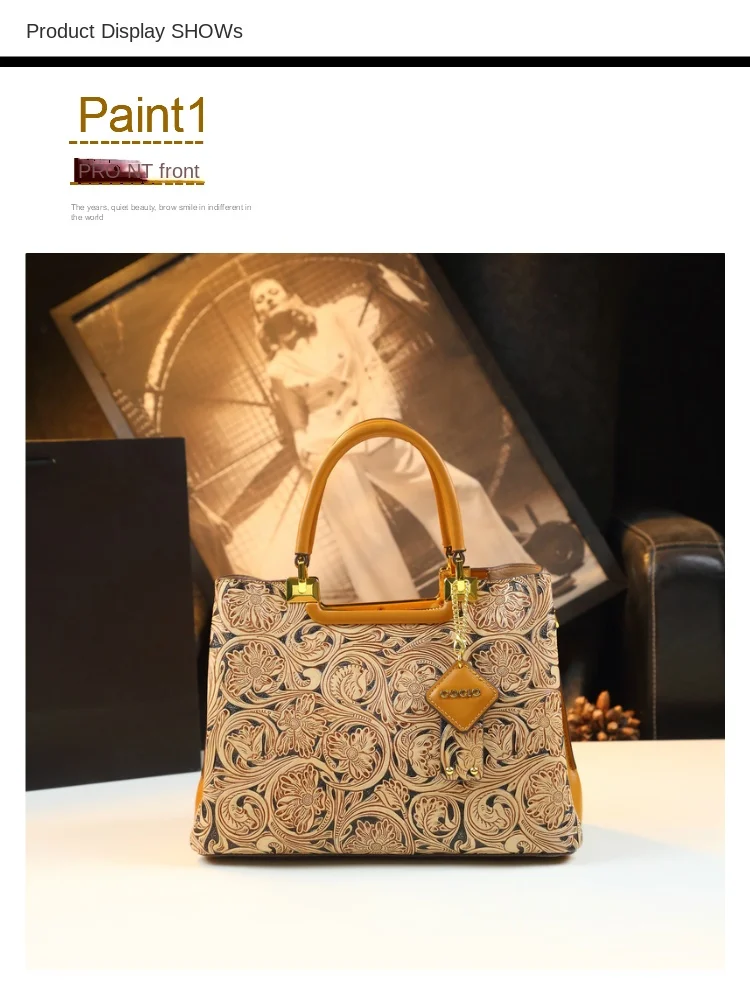 Genuine Leather Carving Women's Handbags Original Design Lady Fashion Shoulder Messenger Bag Retro New Portable Tote Mom Bags