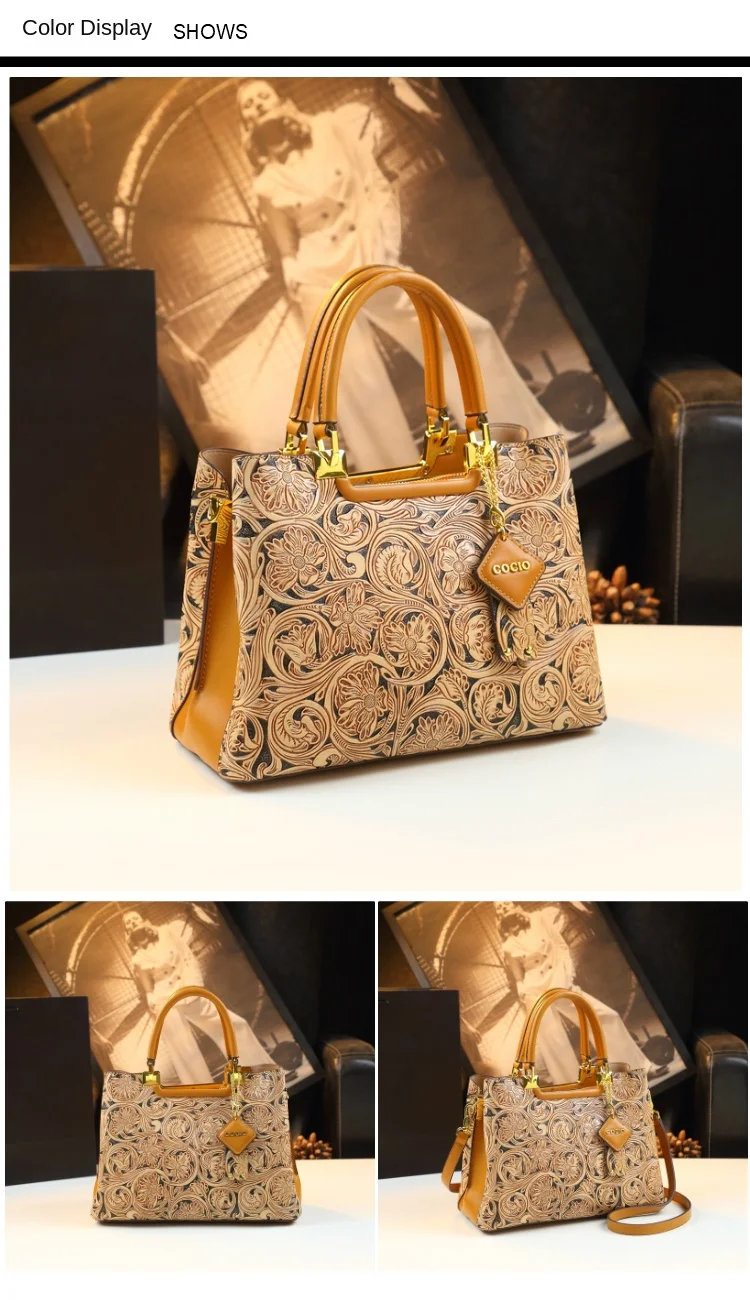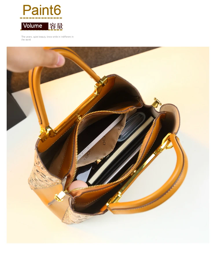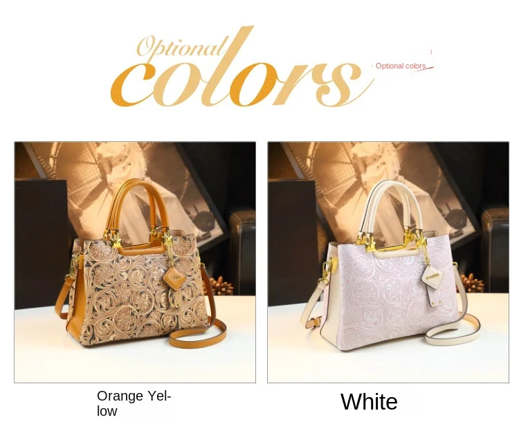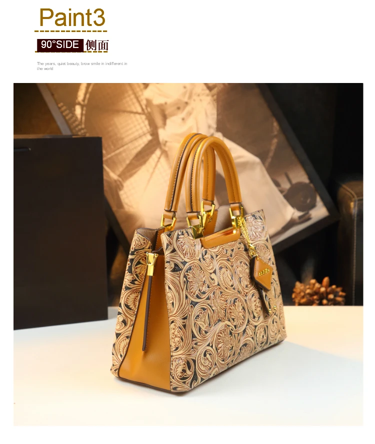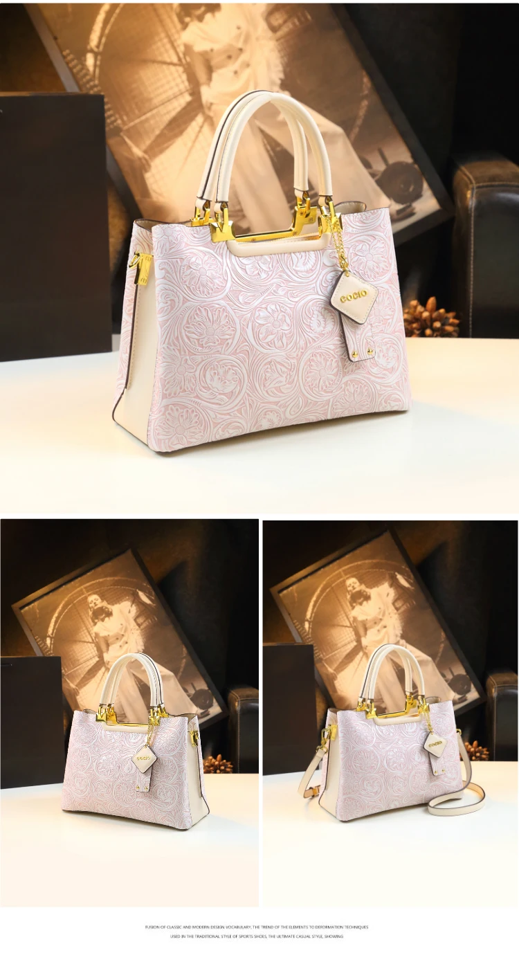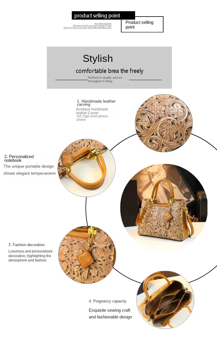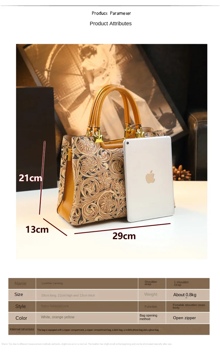 Genuine Leather Carving Women's Handbags Original Design Lady Fashion Shoulder Messenger Bag Retro New Portable Tote Mom Bags