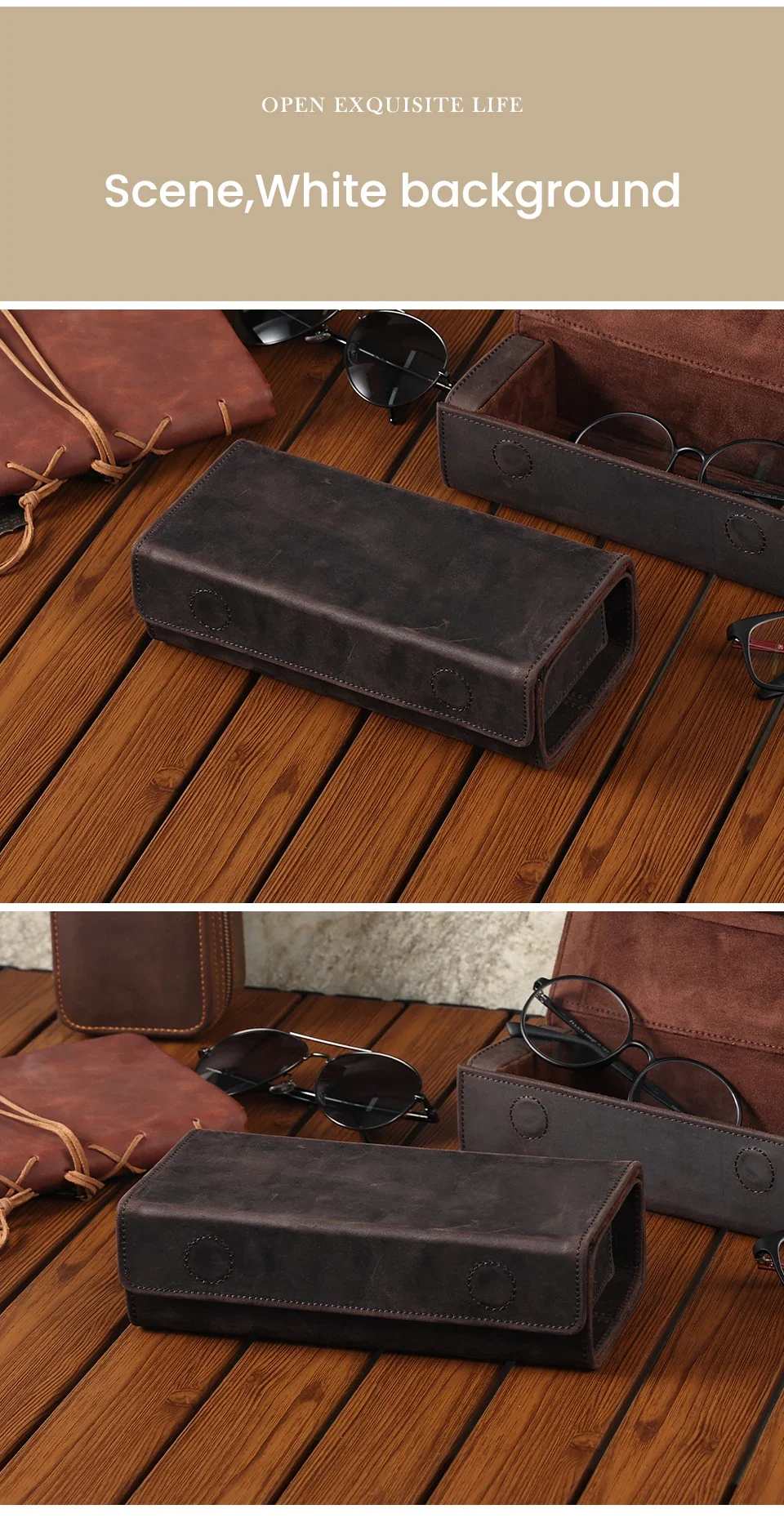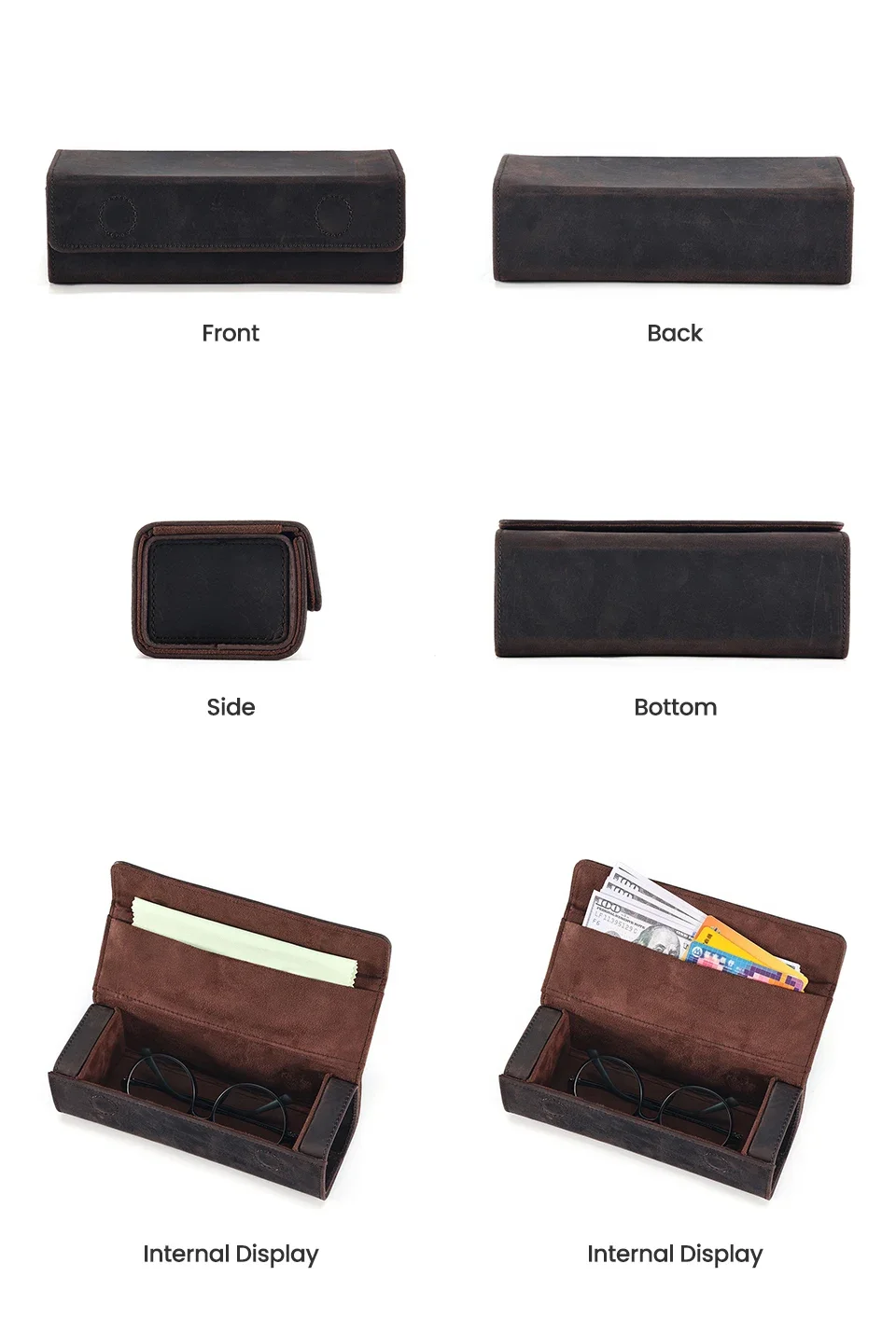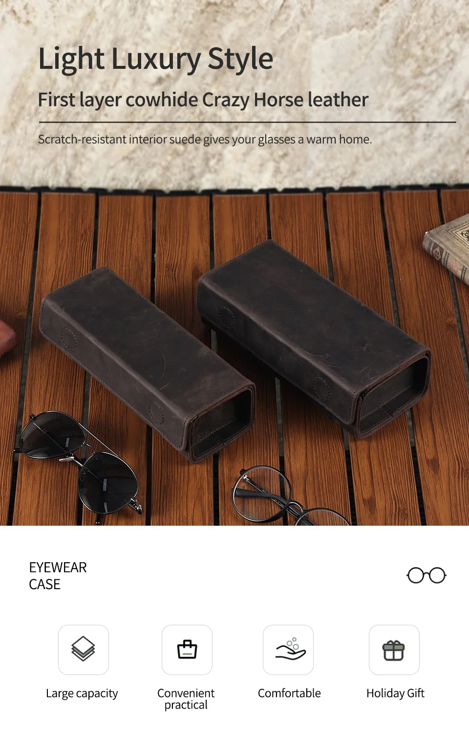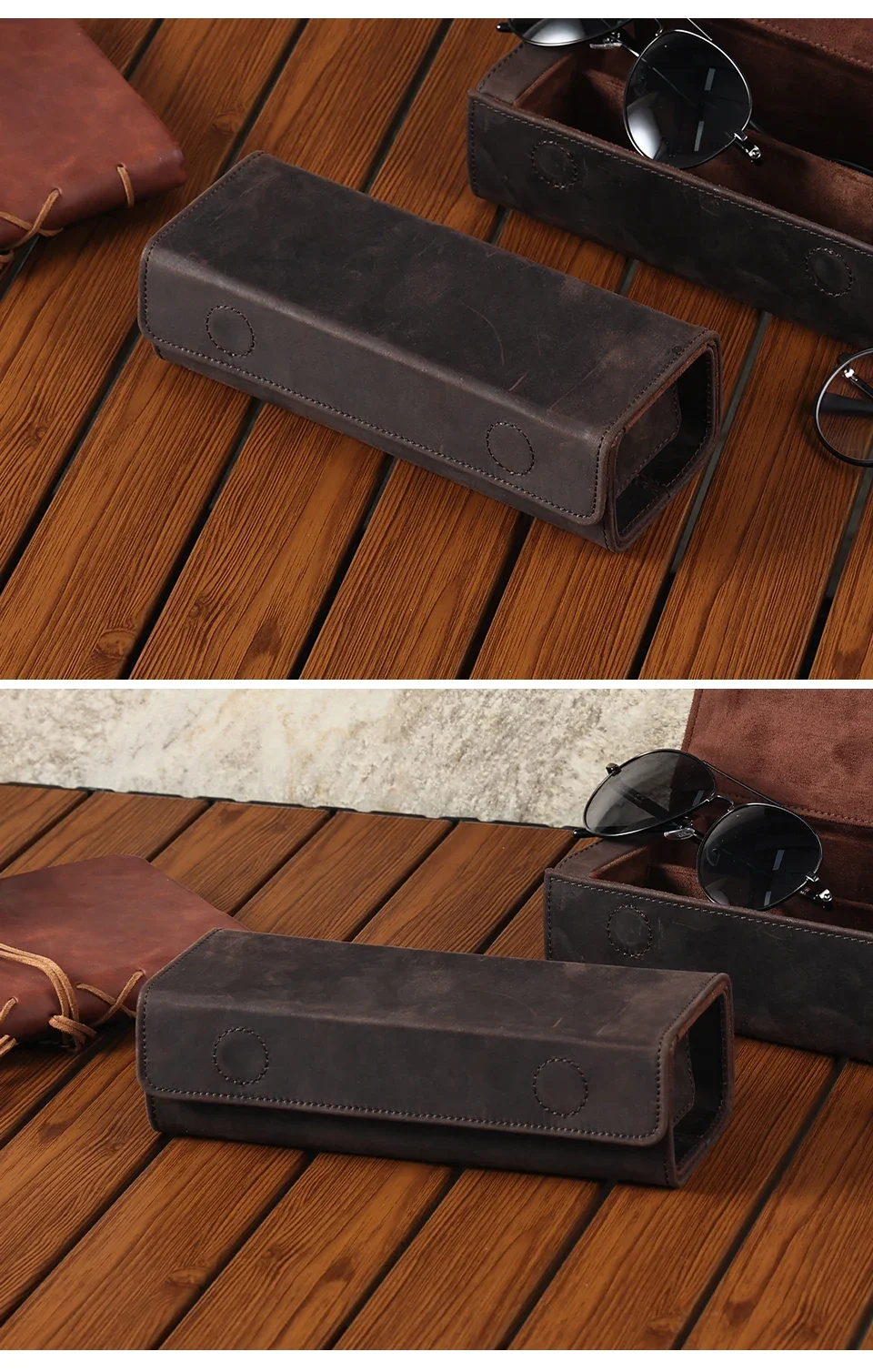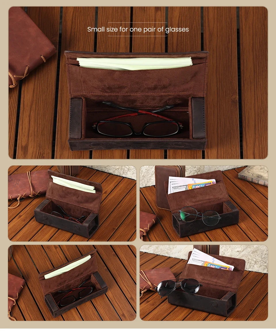 Genuine Leather Eyeglass Case for Men Women Retro Portable Sunglasses Myopia Reading Glasses Protector Storage Box Holder