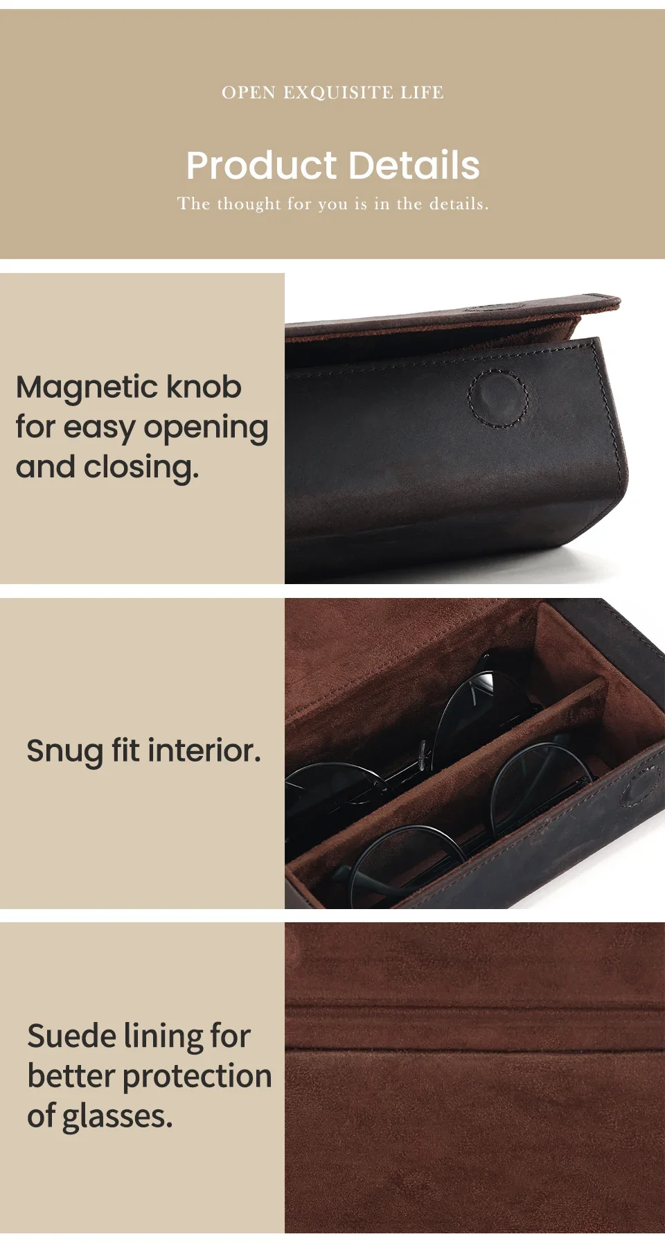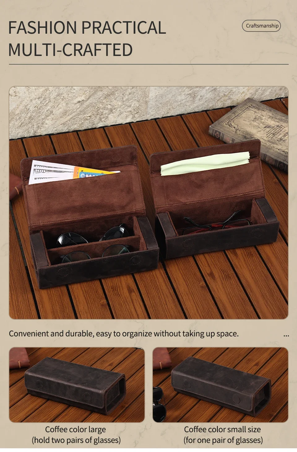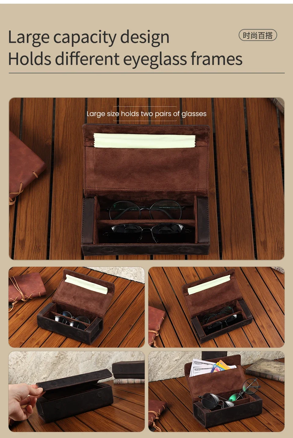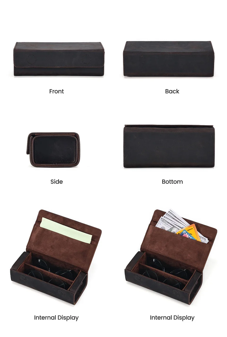Genuine Leather Eyeglass Case for Men Women Retro Portable Sunglasses Myopia Reading Glasses Protector Storage Box Holder