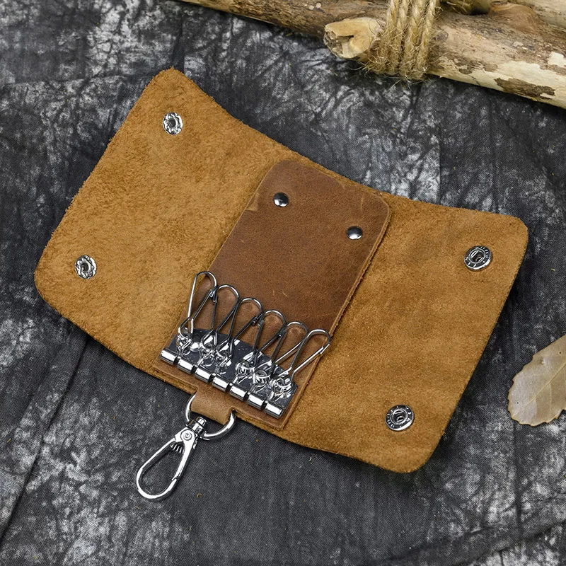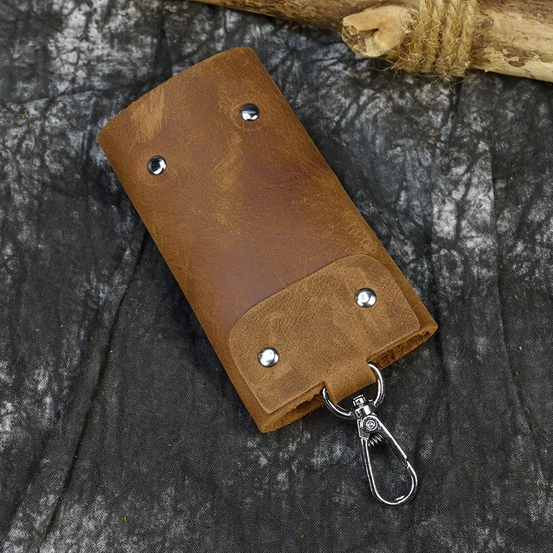 made of 100% crazy horse leather and thick metal key ring