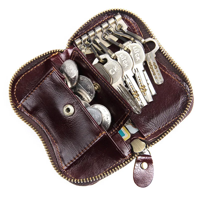 Genuine Leather Keychain Men Women Key Holder Cow leather Split Car Key Bag coin Wallet Housekeeper Keyring Case wallets