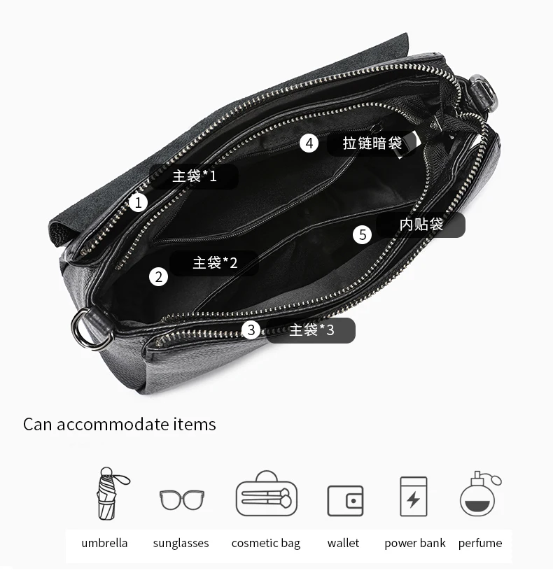 Genuine Leather Lady's Flap Messenger Bags Soft Cowhide Functional Shoulder Handbags Luxury Designer for Women Crossbody Bag New