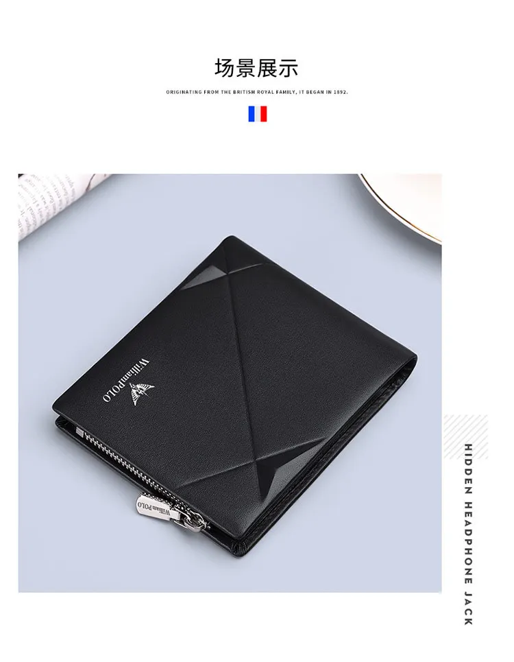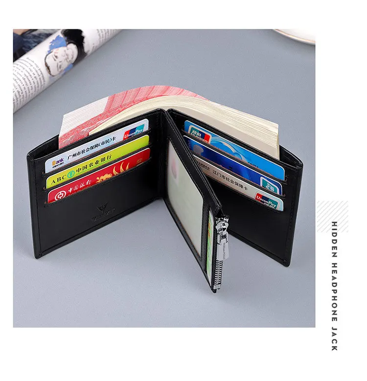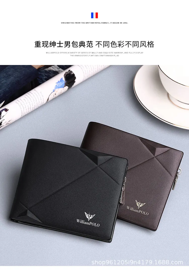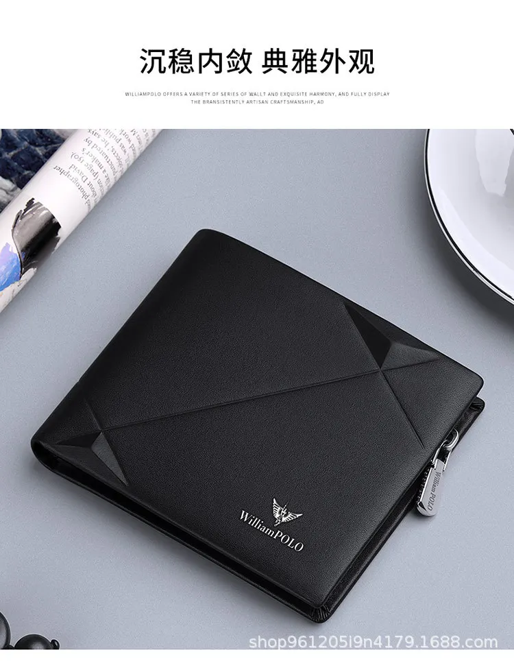 Genuine Leather Luxury Men's Wallets Multifunctional Folding Short Men's Money Bags Multiple Card Slots With Zipper Coin Purses