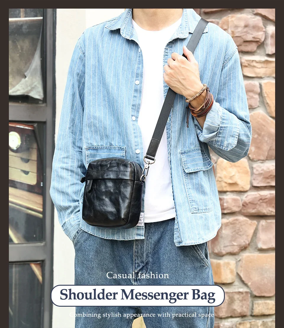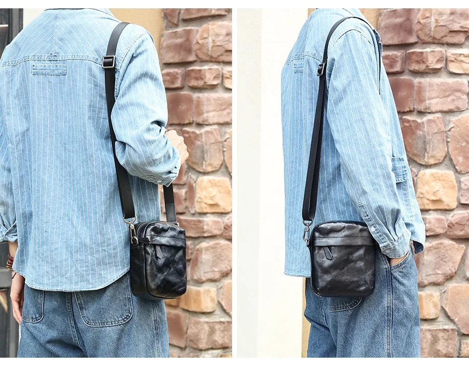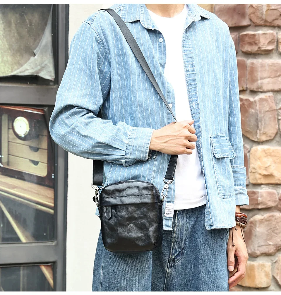 Genuine Leather Men's Shoulder Small Cell Phone Crossbody s Purse Travel Casual Messenger Bag Handbag New