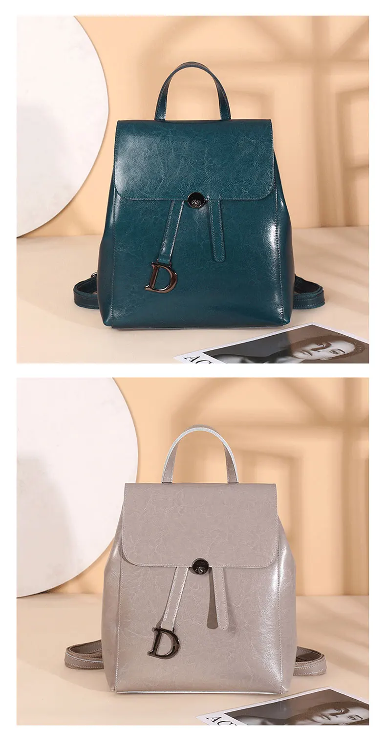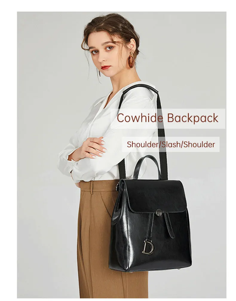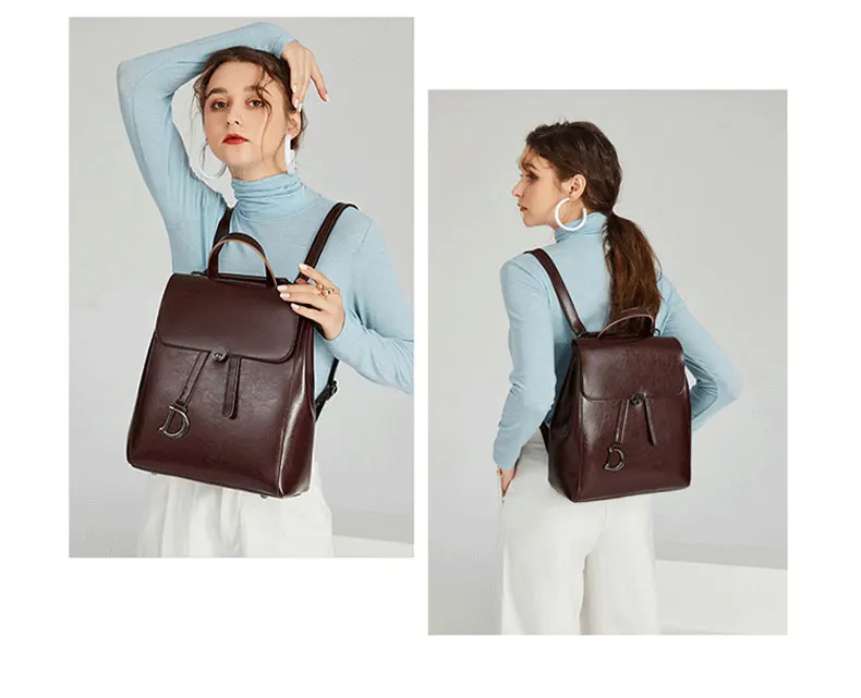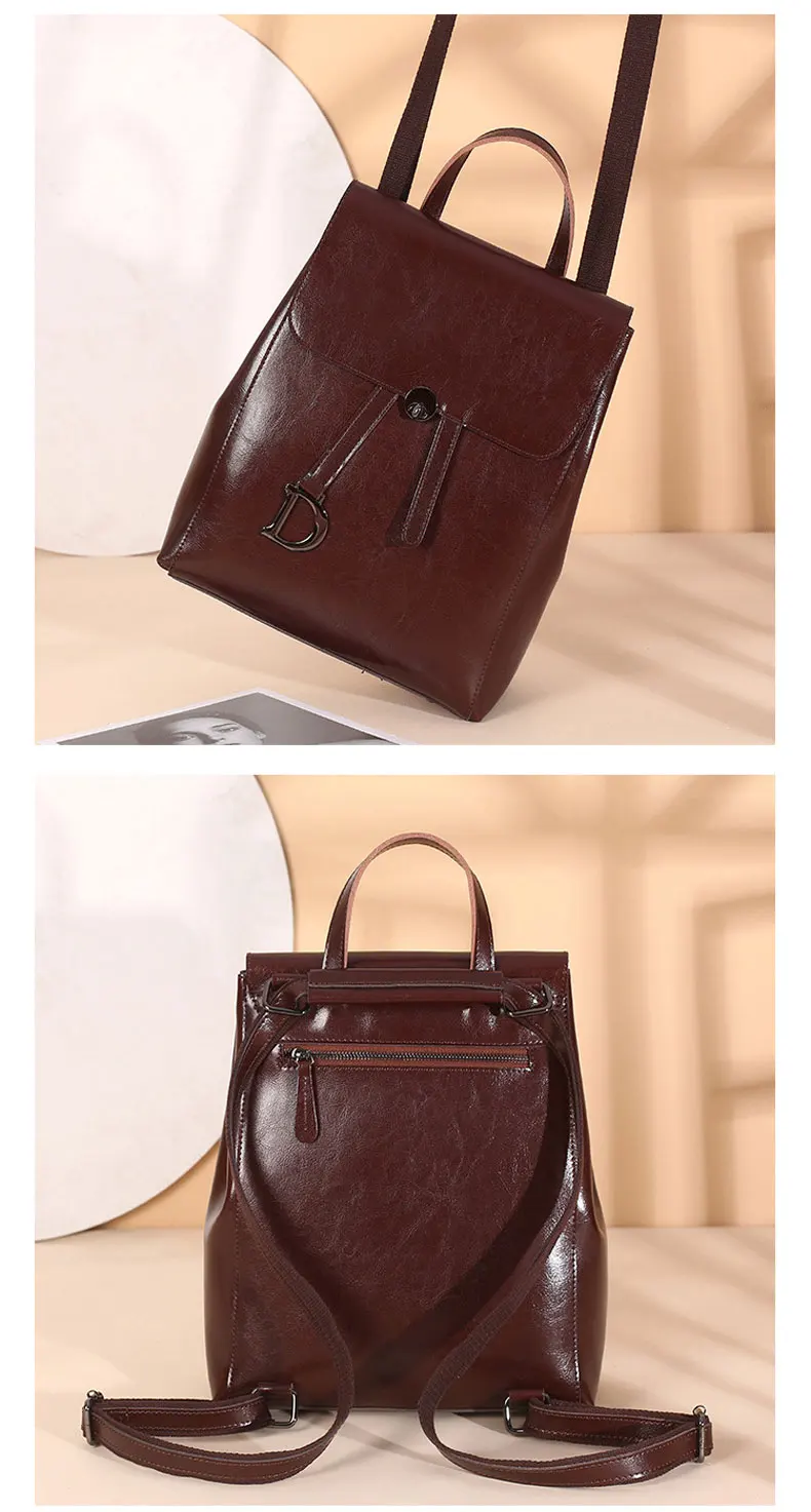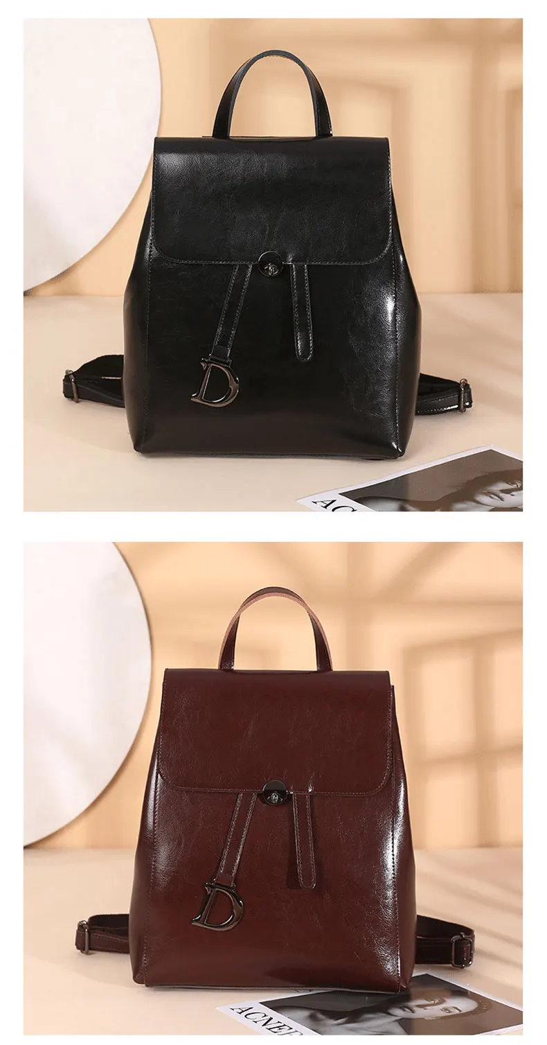 Genuine Leather Women's Backpack Retro College Style Girls Shoulder Bag High Quality Cowhide School Bags Large Capacity Tote Bag