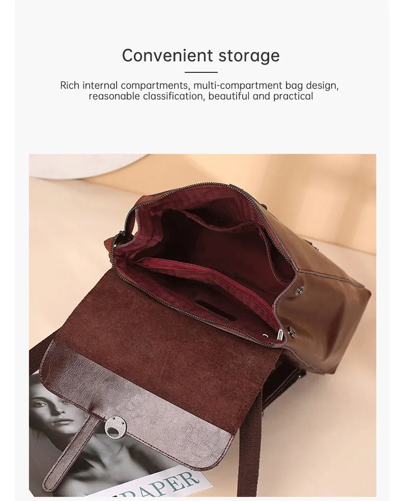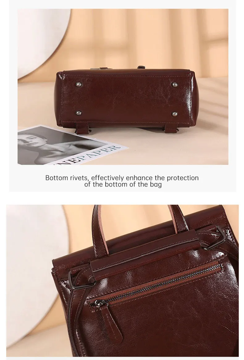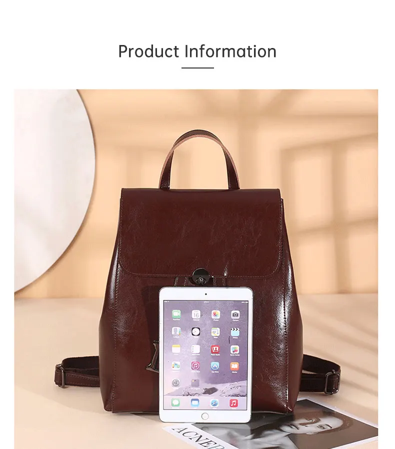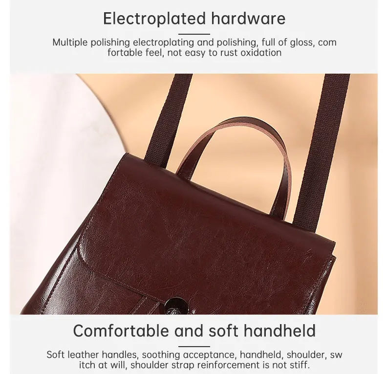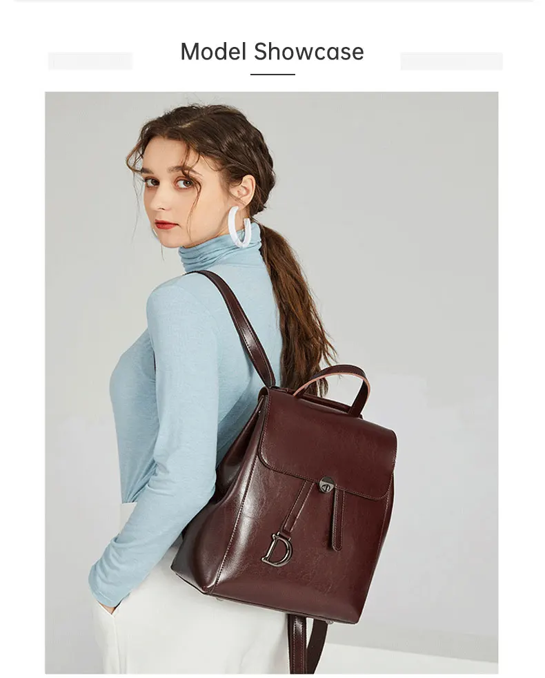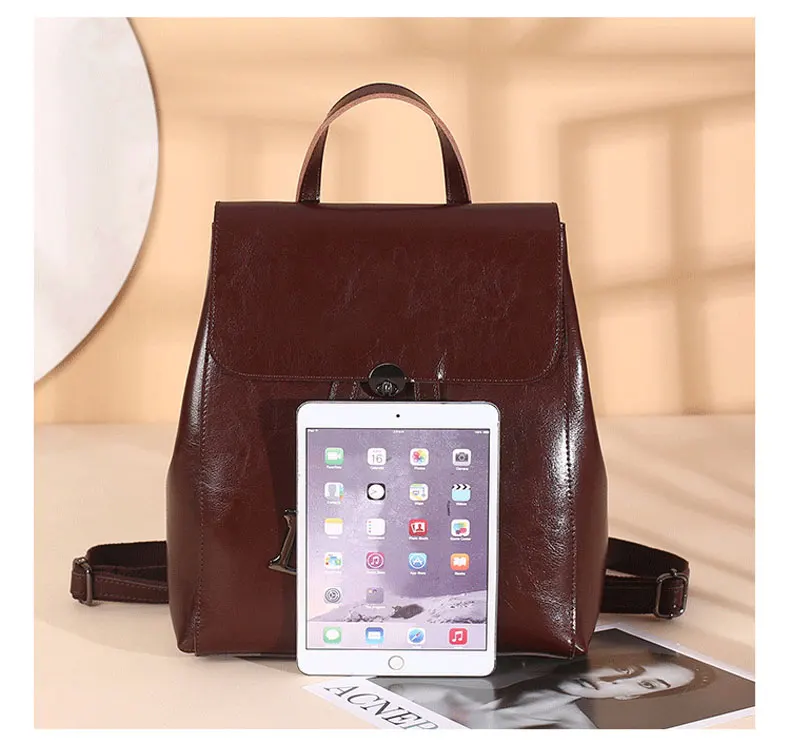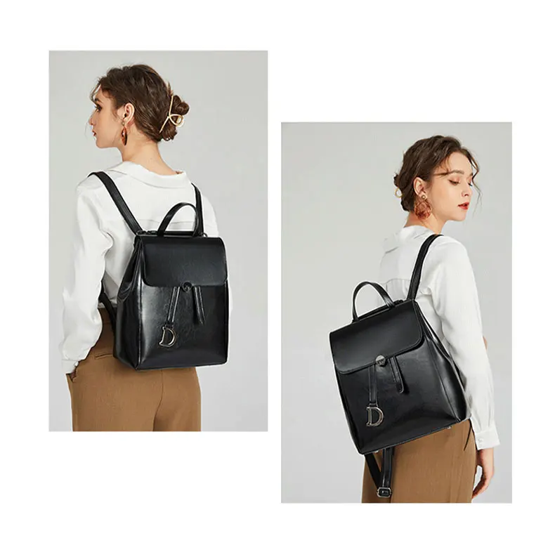 Genuine Leather Women's Backpack Retro College Style Girls Shoulder Bag High Quality Cowhide School Bags Large Capacity Tote Bag