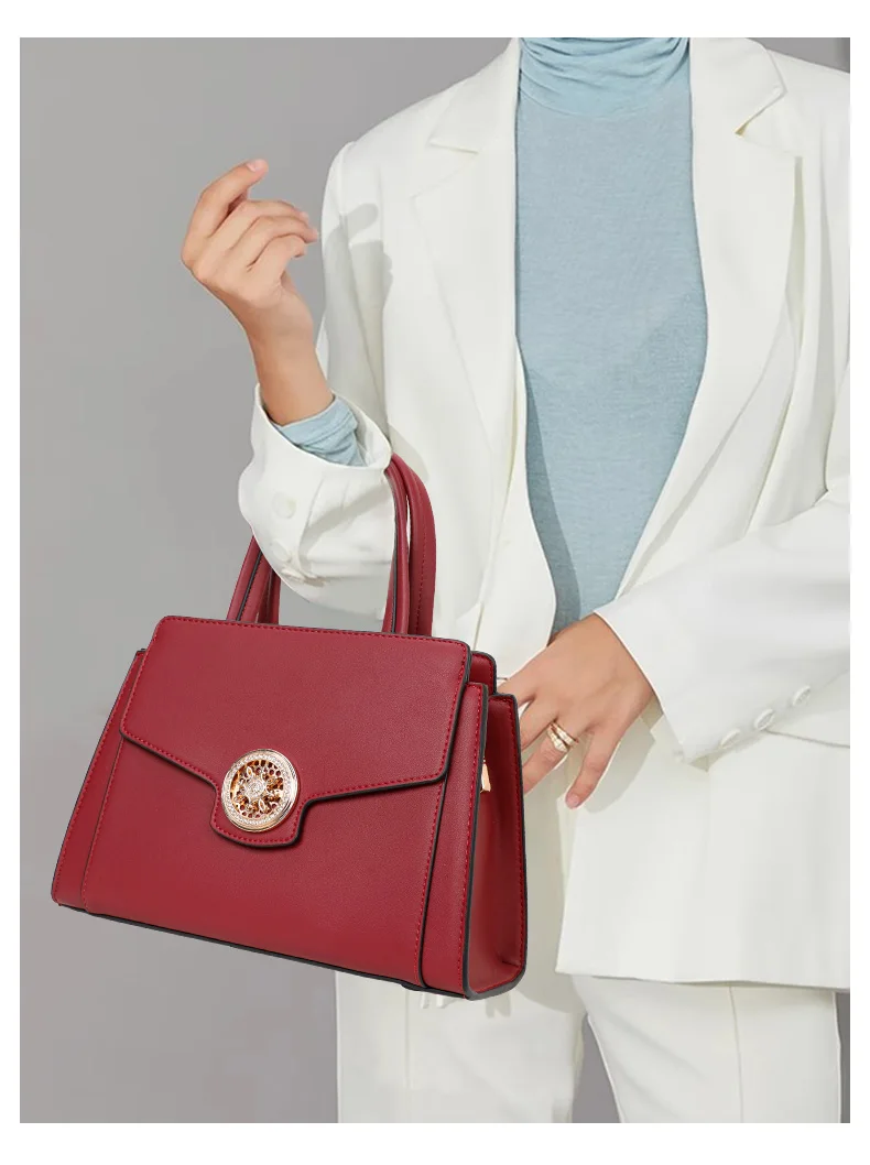 Genuine leather women's bag with large capacity, 2024 new light luxury red wedding bag, middle-aged mother's handbag, female