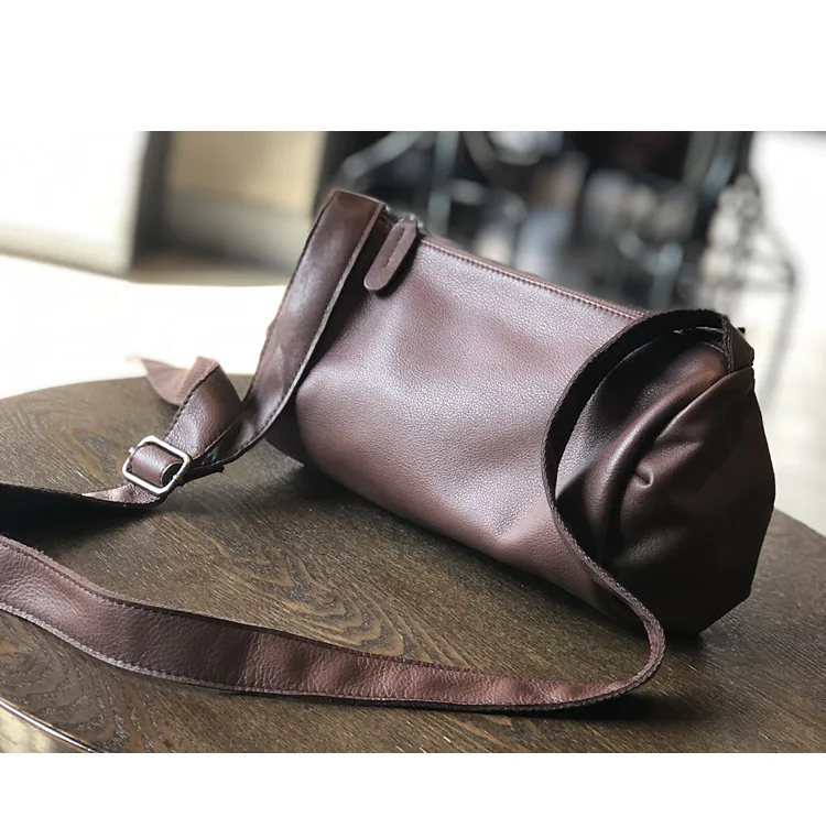 Genuine leather women's shoulder bag 2024 autumn and winter new cylindrical small bag soft leather retro shoulder bag top layer cowhide fold female bag