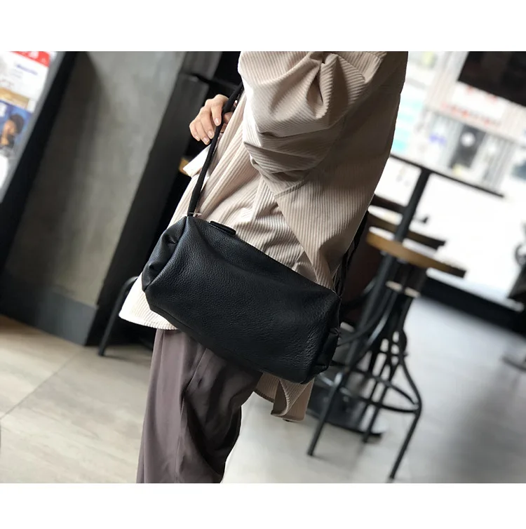 Genuine leather women's shoulder bag 2024 autumn and winter new cylindrical soft leather retro shoulder bag top layer cowhide