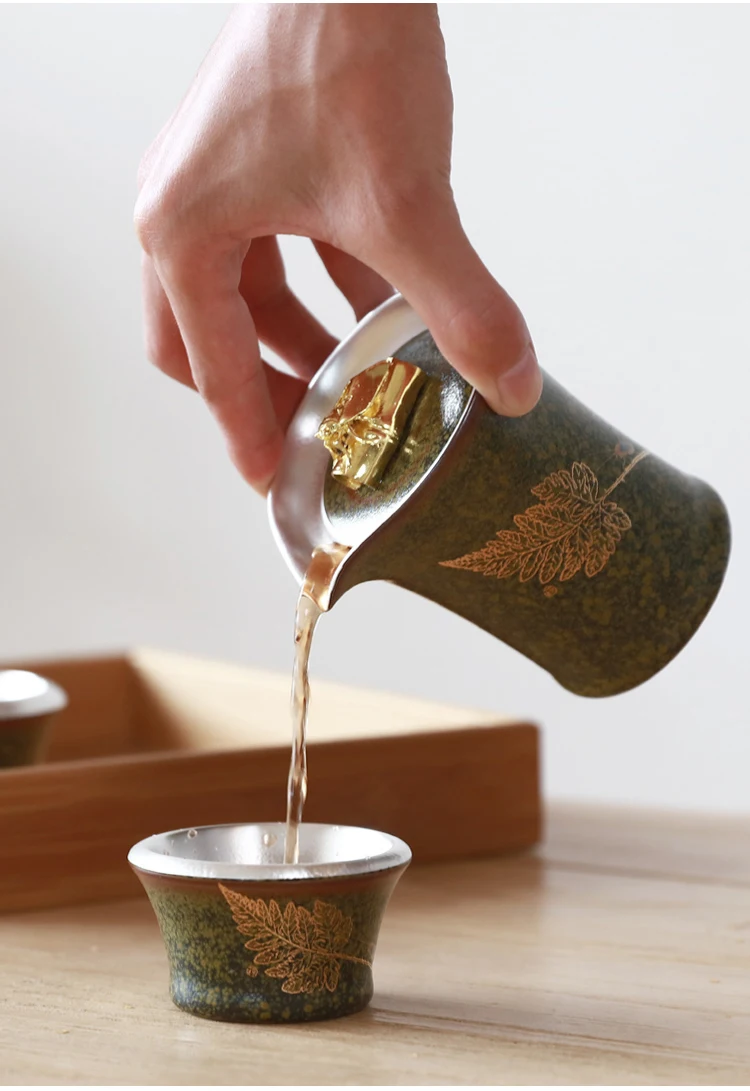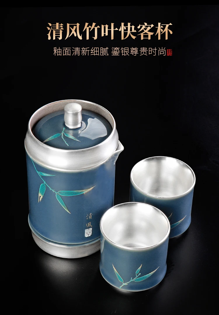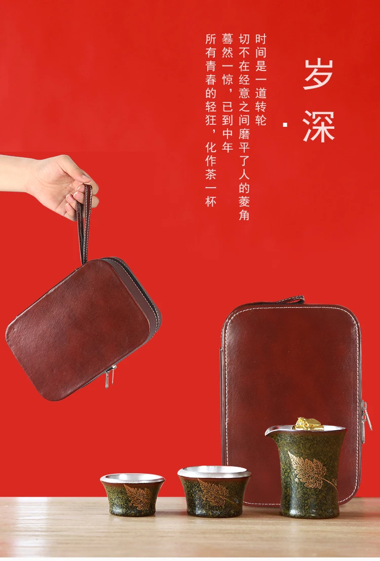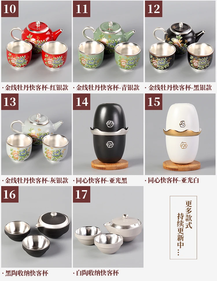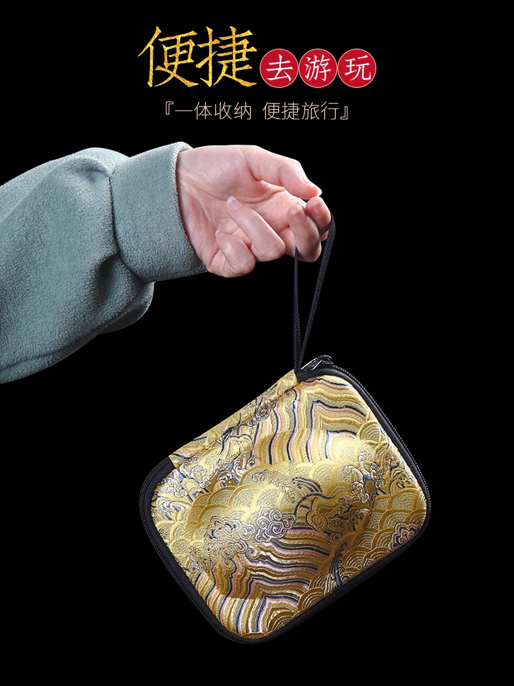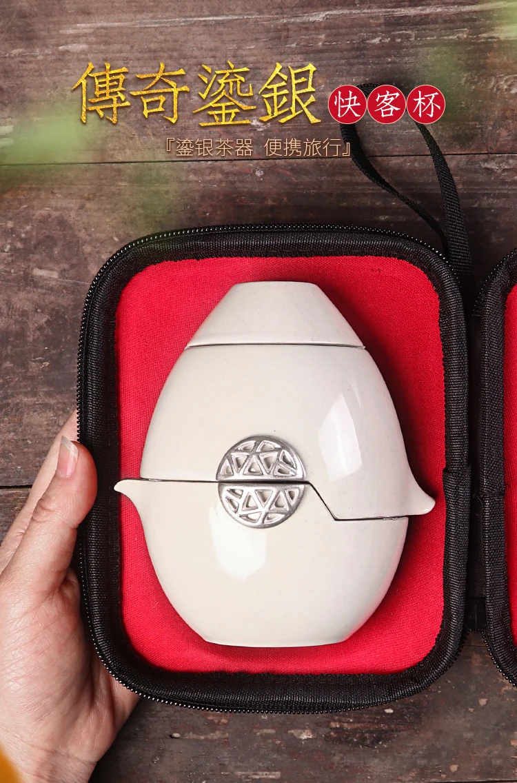 Gilt silver quick guest cup, one pot, two cups, 2 people ceramic Kung Fu Japanese office portable travel tea set