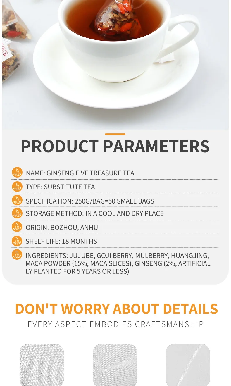 Ingredients: jujube goji berry mulberry, Huangjing maca powder ginseng
