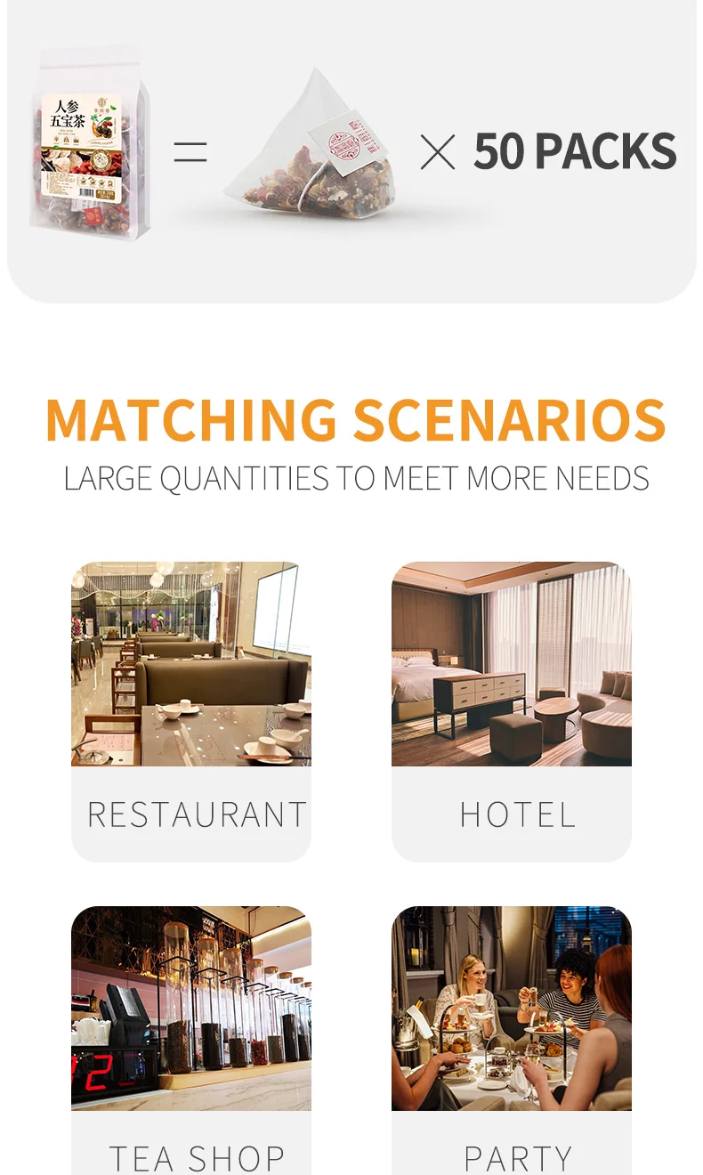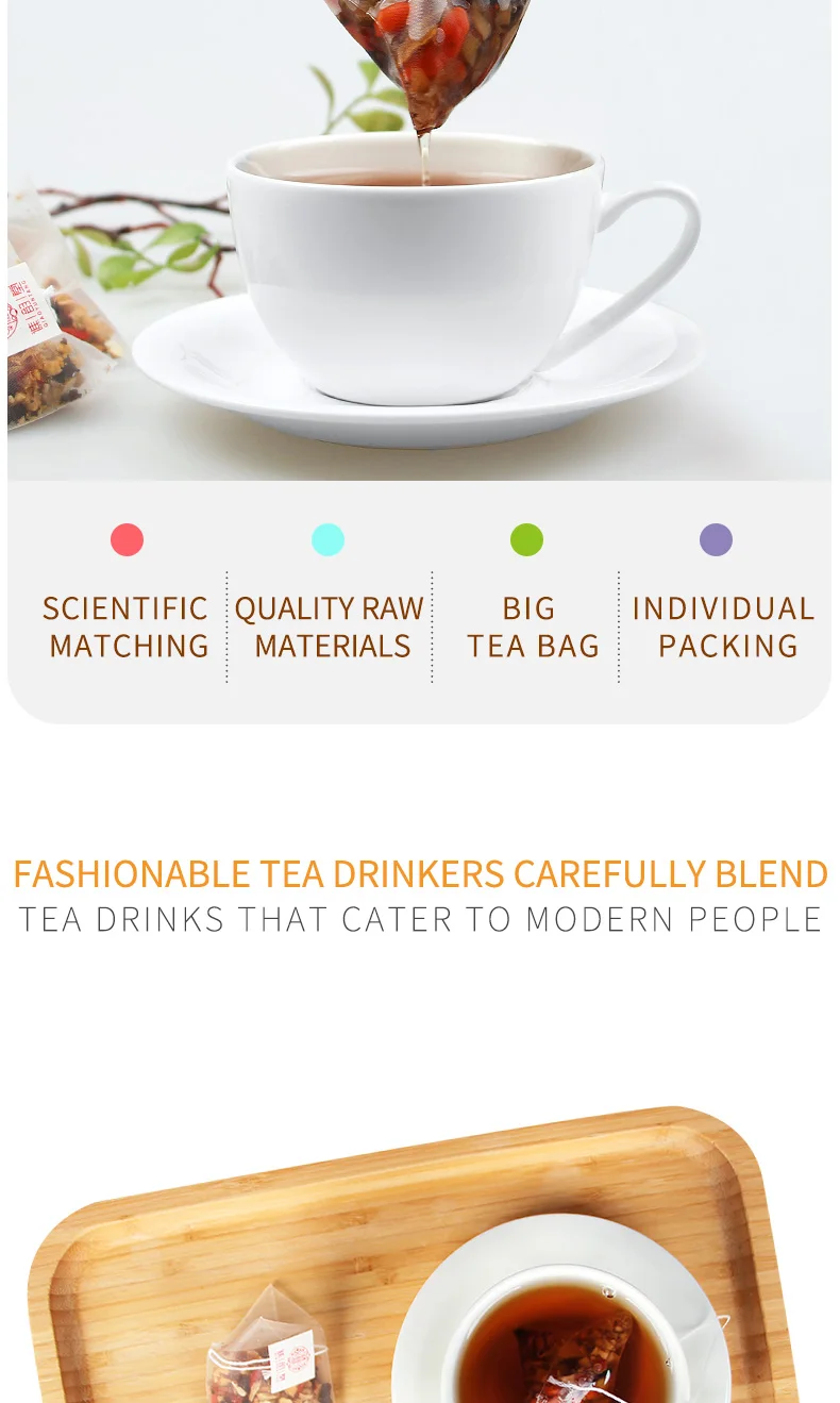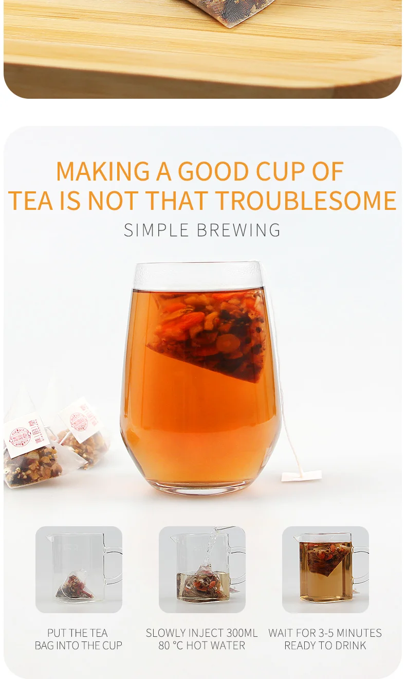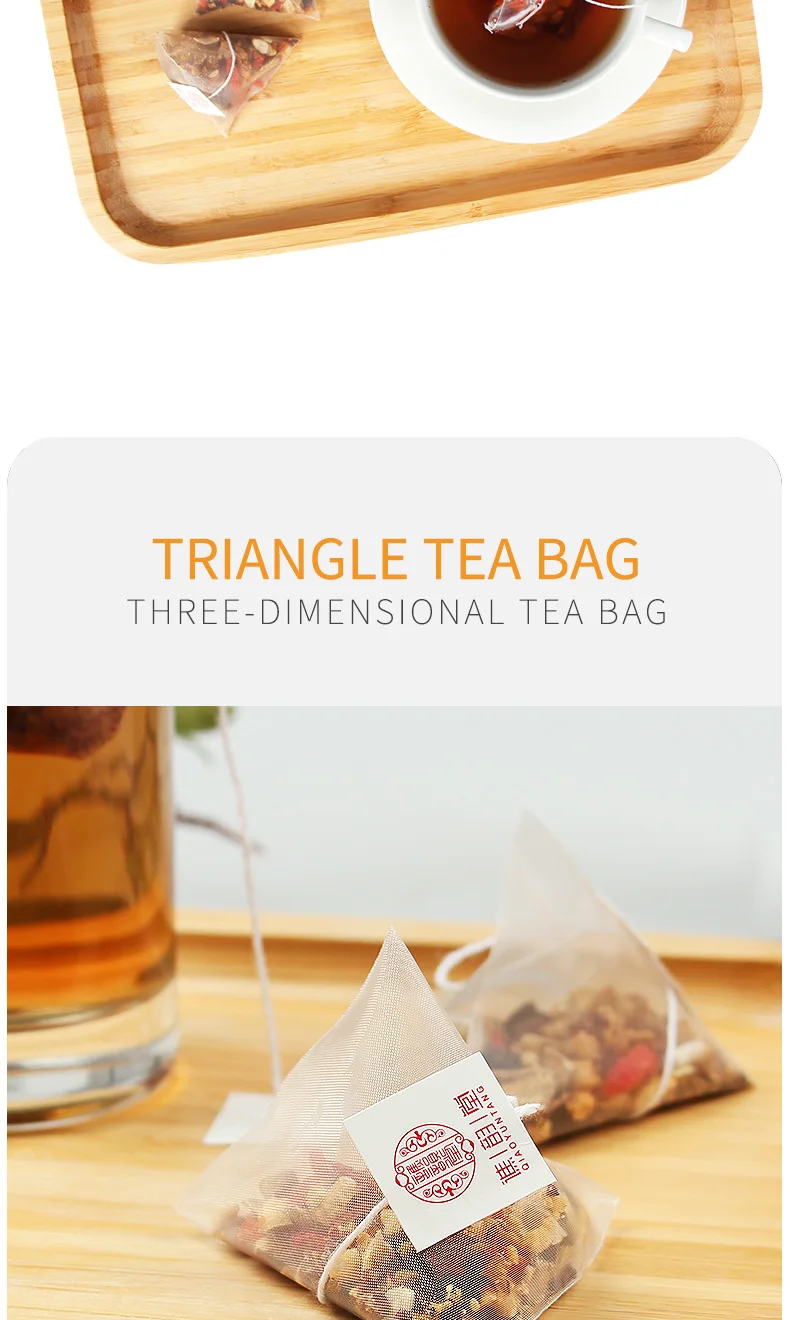 This product adopts a triangular tea bag design, which can prevent tea ingredients from entering the mouth when drinking.