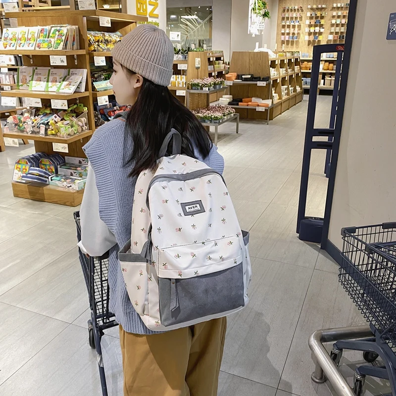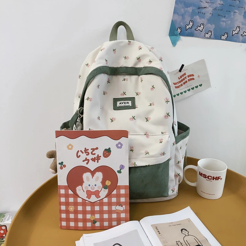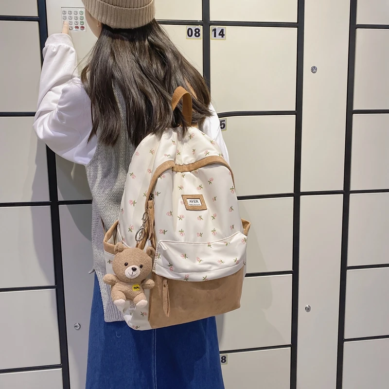 Girl Trendy Nylon Kawaii Flannel Floral Bag Ladies Cute College Backpack Women Travel Student Bag Female Laptop Backpack Fashion