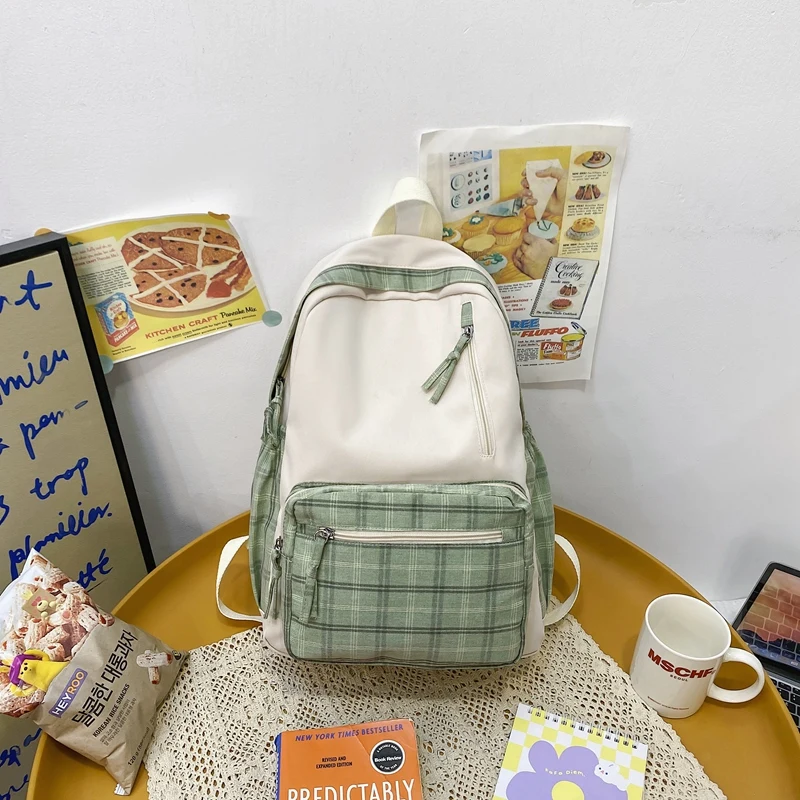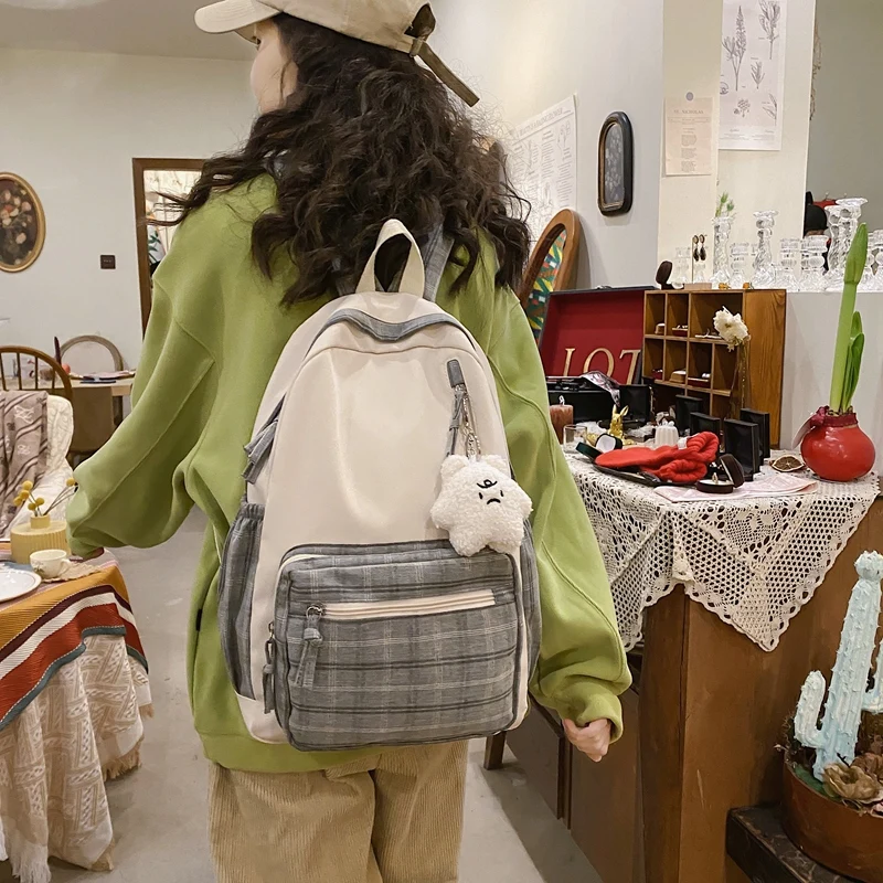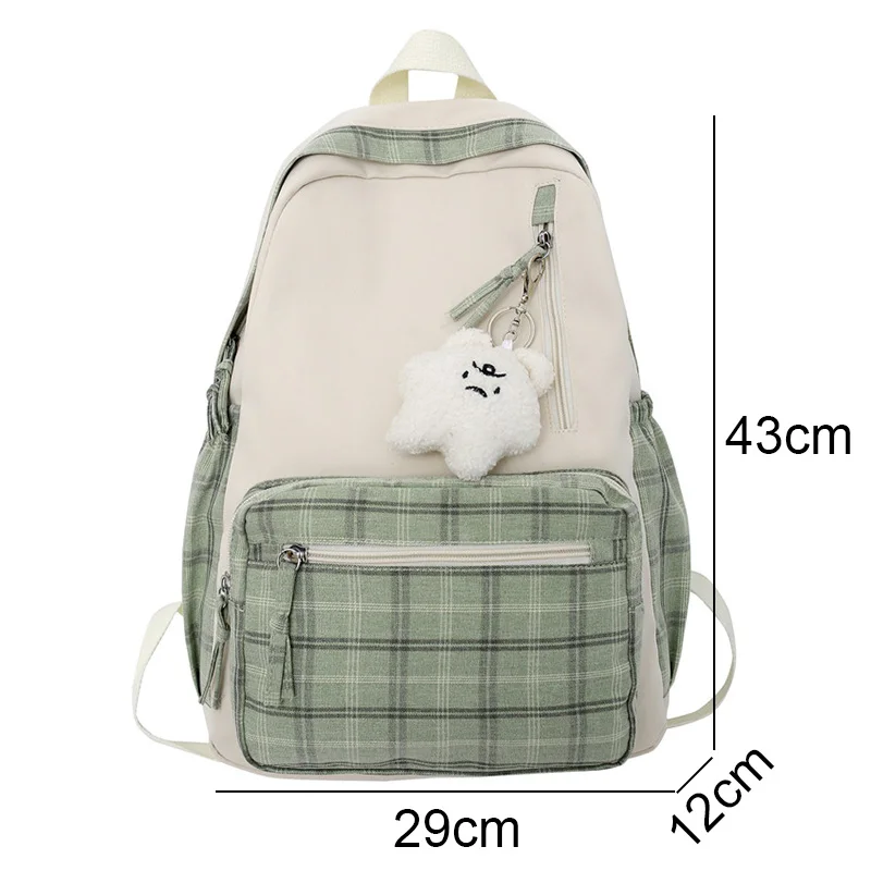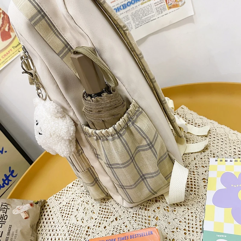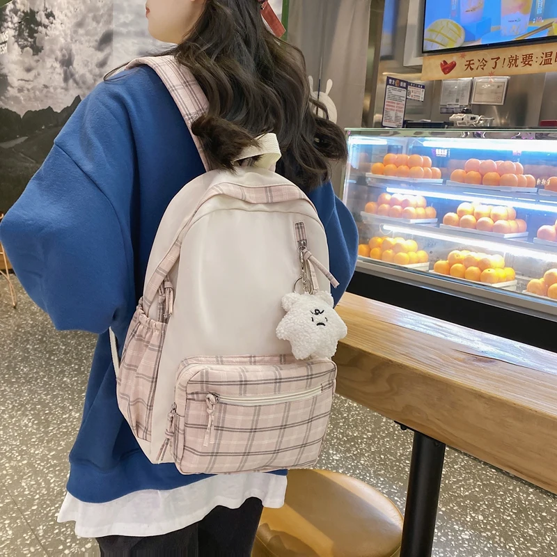 Cute Girl Lattice Travel School Bag Fashion Lady Kawaii Book Backpack Trendy College Cool Female Plaid Backpack Women Laptop Bag