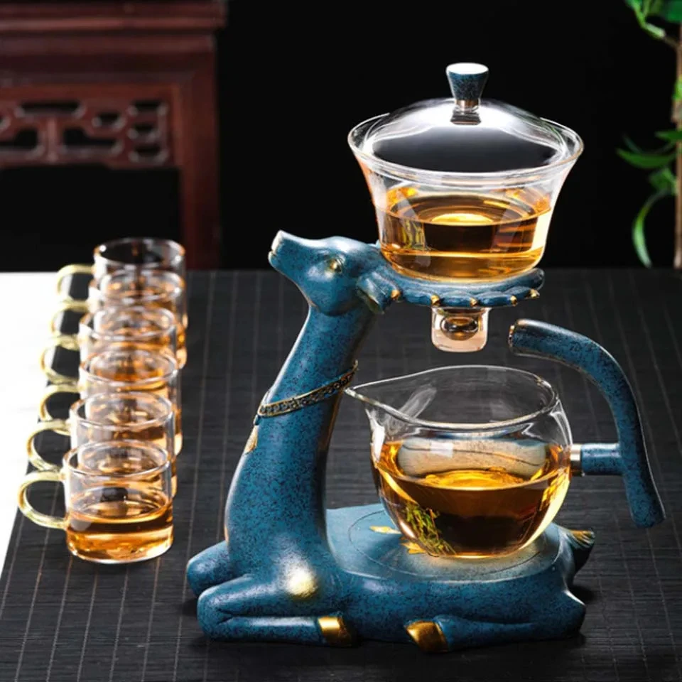 Glass Full Automatic Creative Deer Teapot Kungfu Tea Set Magnetic Water Diversion Tea Infuser Tea Set Accessories