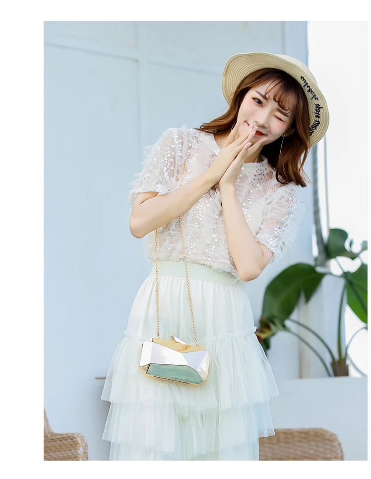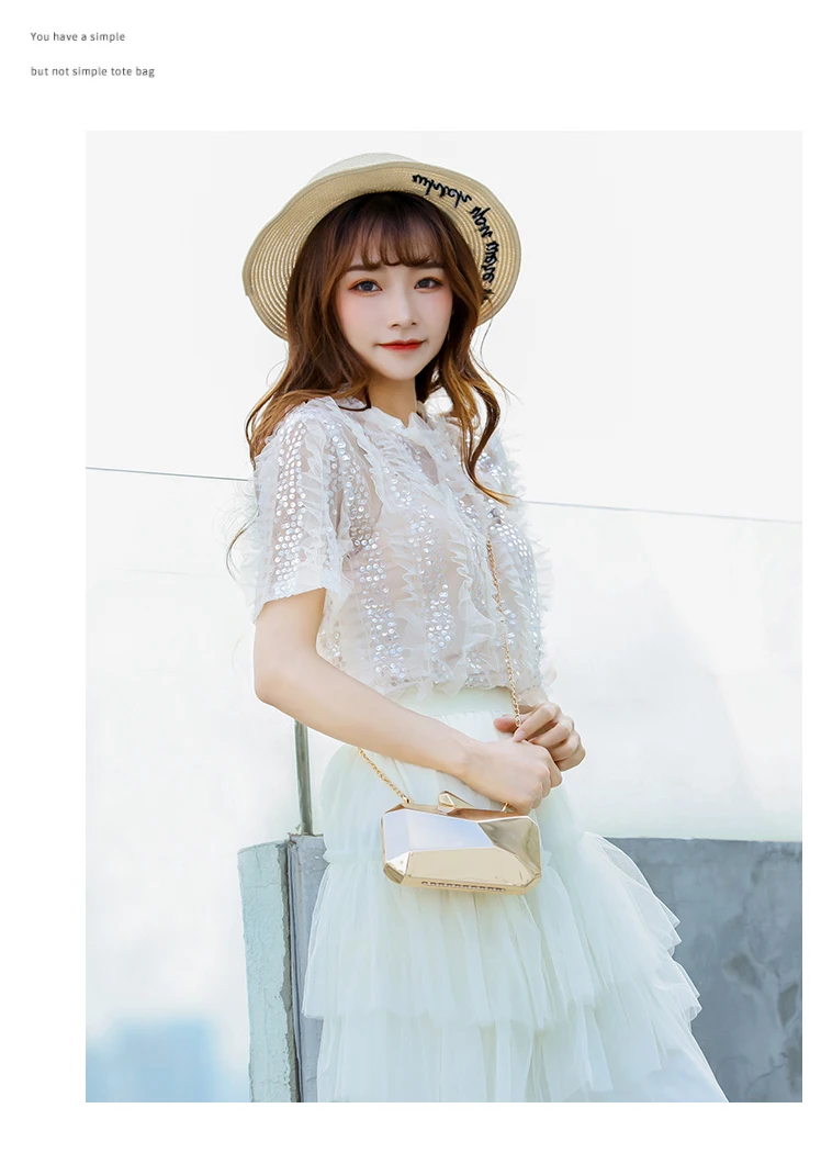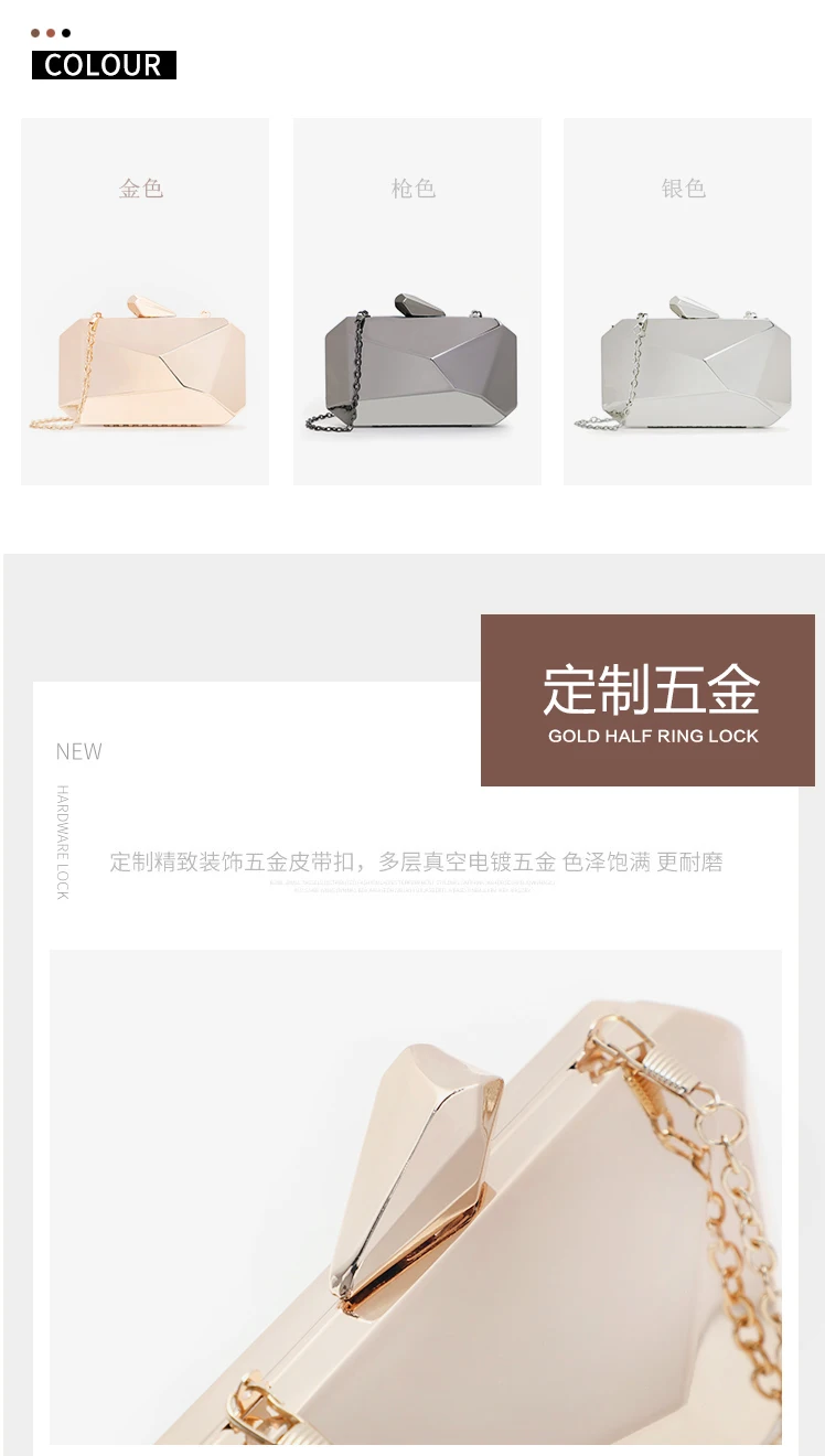 Gold Acrylic Box Geometric Evening Bag Clutch bags Elegent Chain Women Handbag For Party Shoulder Bag For Wedding/Dating/Party