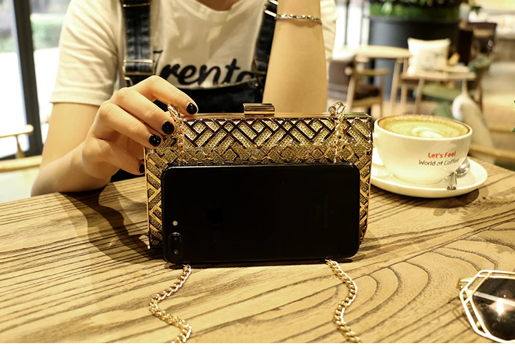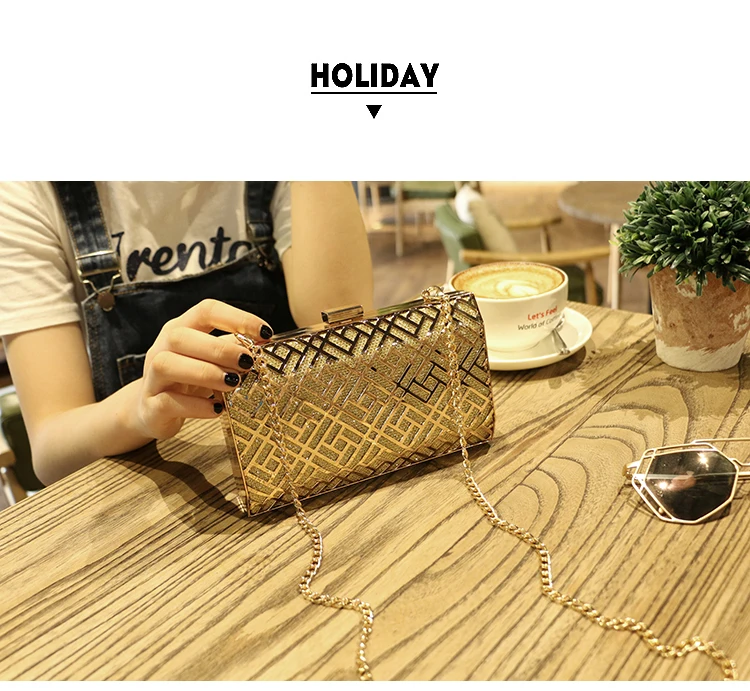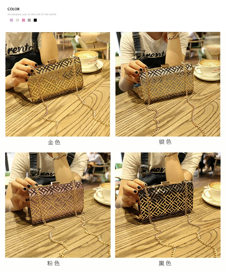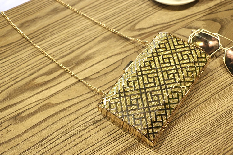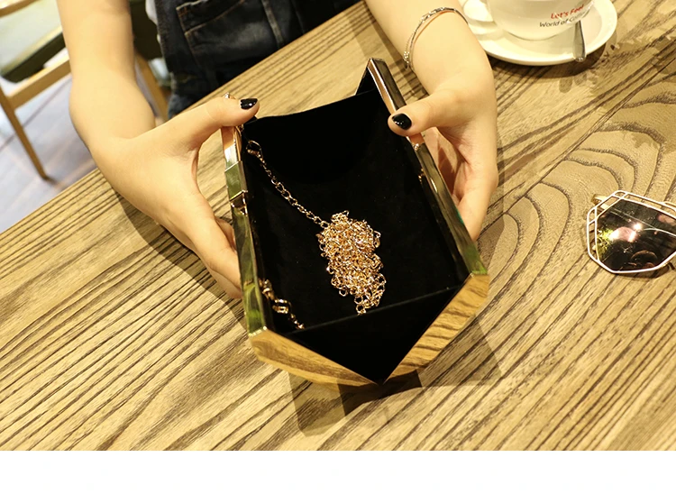 Gold Acrylic Box Geometric Evening Bag Clutch bags Elegent Chain Women Handbag For Party Shoulder Bag For Wedding/Dating/Party