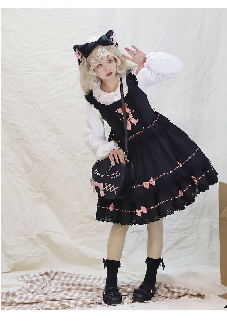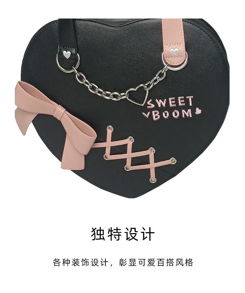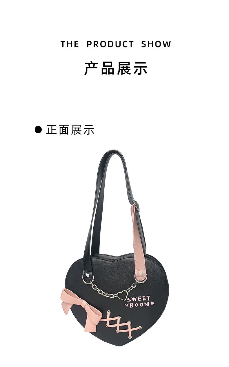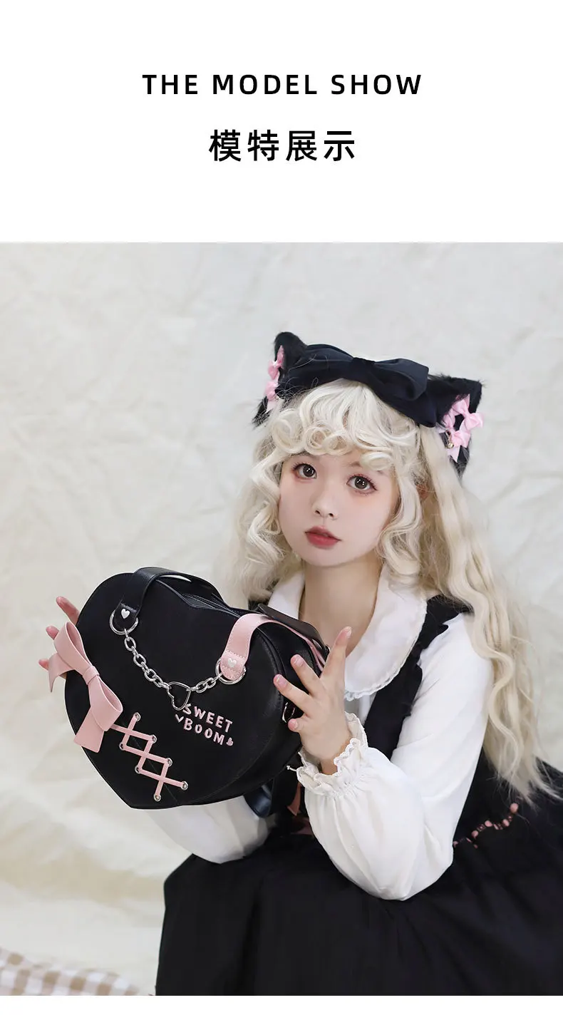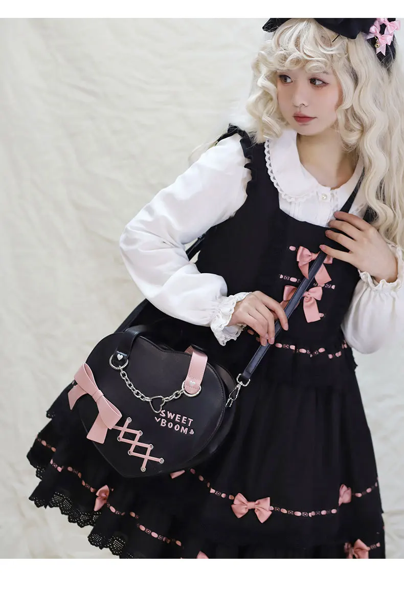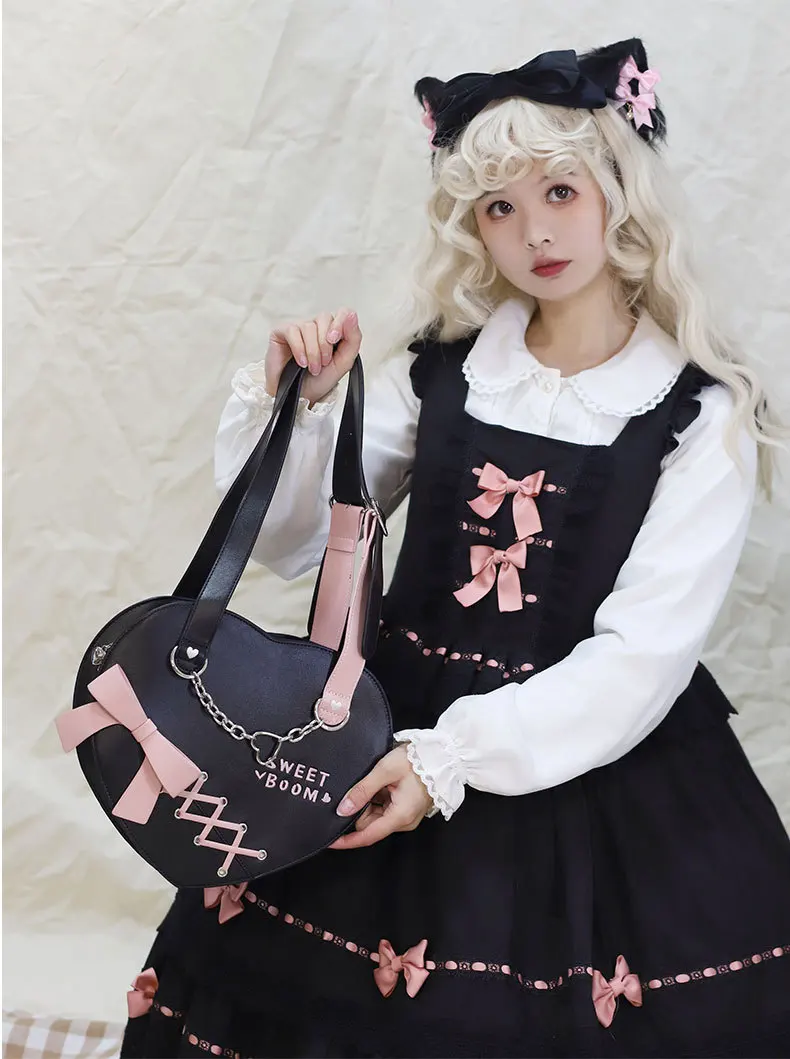 Gothic Lolita Heart Shaped Purses and Handbags for Women Kawaii Girls Shoulder Bag Japanese Bowknot Satchel Bag Crossbody Bag
