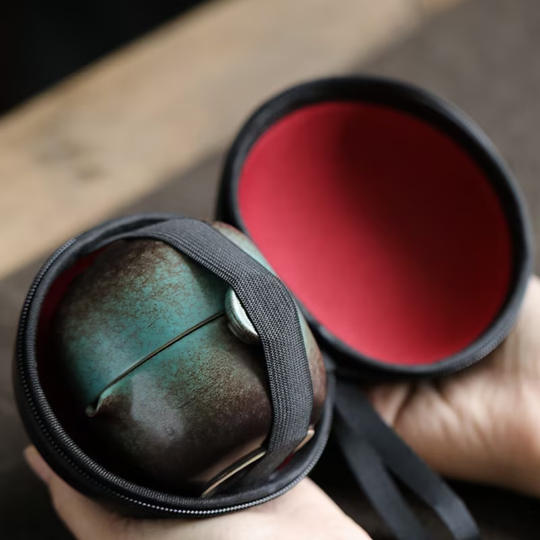 Green Ceramic Teapot with 2 Cups Travel Tea Set with Bag