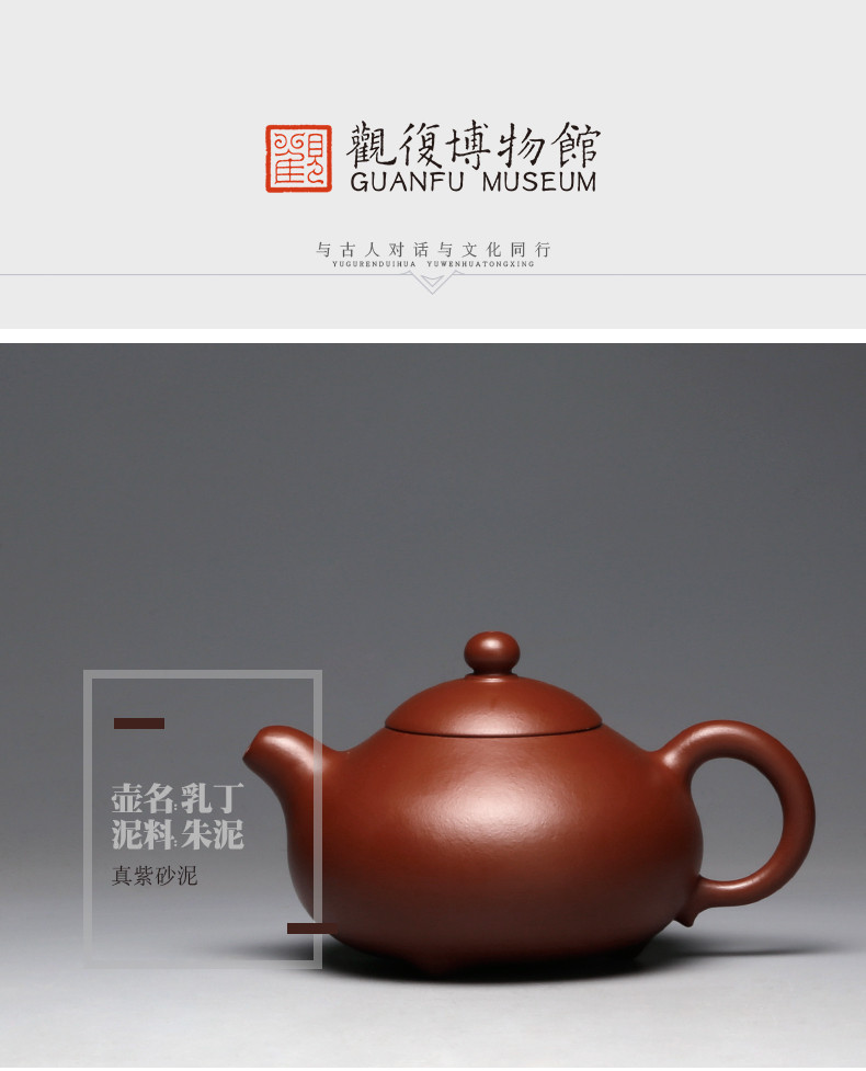 Guanfu Museum Ruding Purple Clay Pot Yixing Cinnabar Sand Purple Clay Pot Handmade Large Capacity Household Gongfu Teapot Oolong