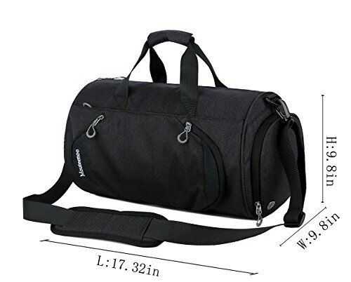 - THE RIGHT SIZE: X-Small size:17.32L"X9.8W"X9.8H", Small size: 20.5L"X11W"X11H". There are 1 side mesh pocket, 1 side shoes compartment, two outer zipped pockets for quick access items, 1 inner pocket and a main compartments, roomy for gym clothes, shoes, water bottles, wallet, cell phone, headphones, keys etc. It's the perfect size for gym and sports.