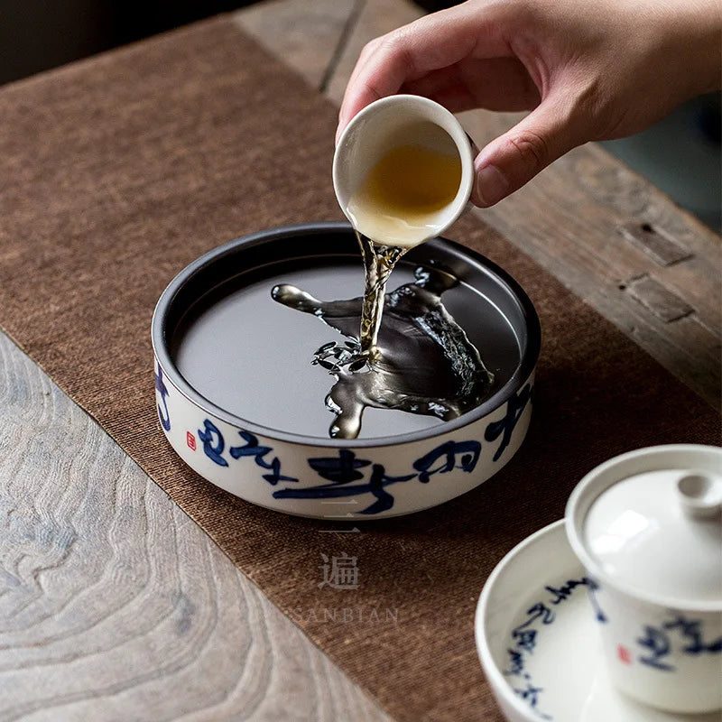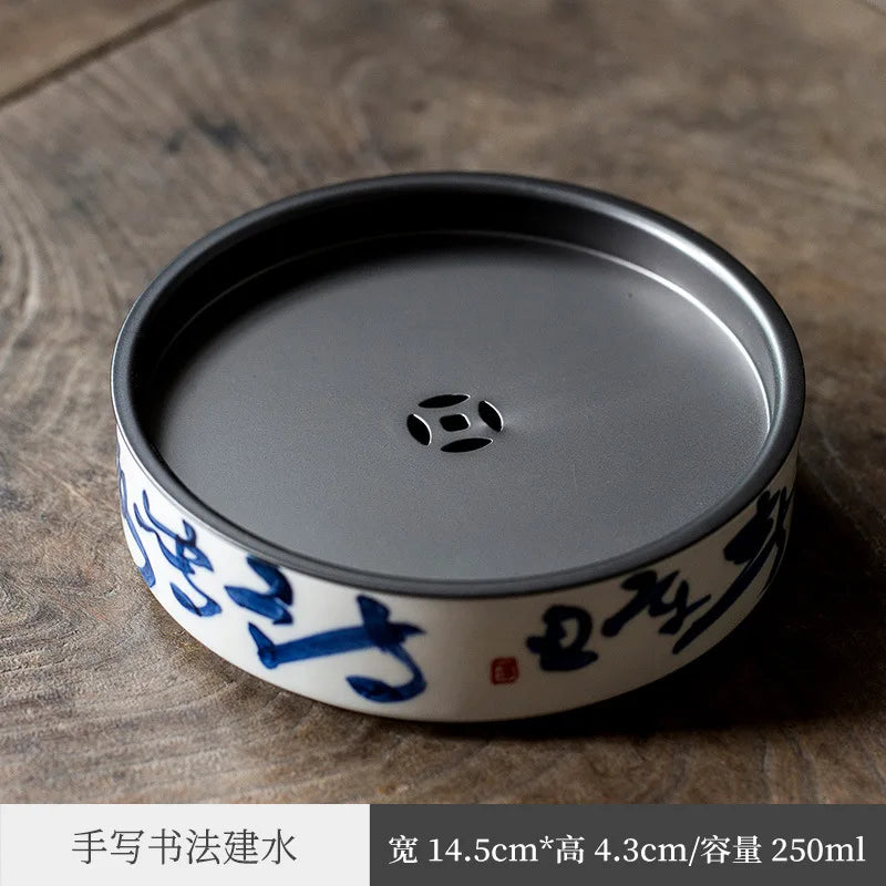 Hand Drawn Tea Shi Cao Mu Gray Pot Tray Water Storage Tea Table Yixing Clay Teapots Support Ceramic Pot Mat Small Tea Table Ji