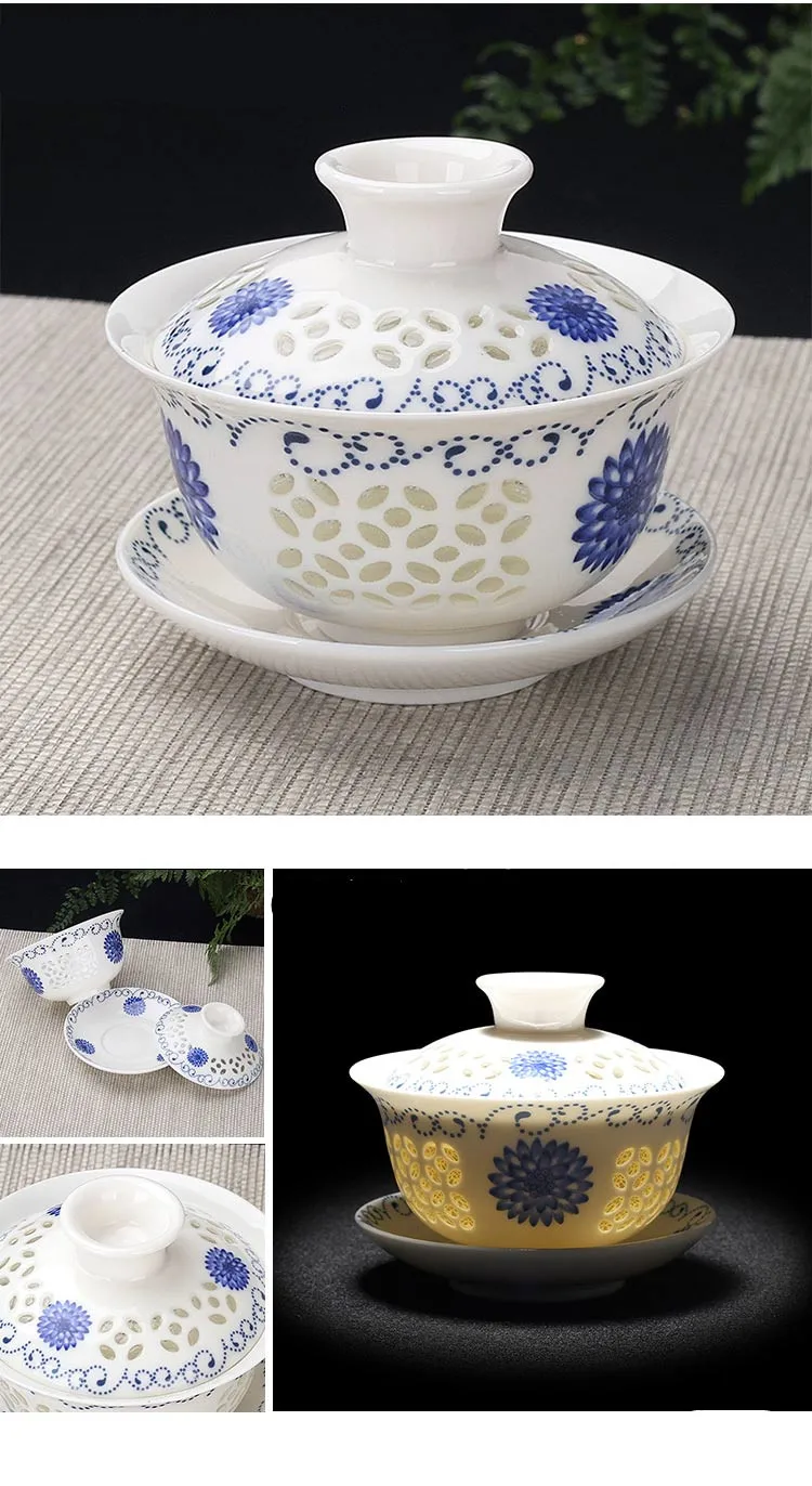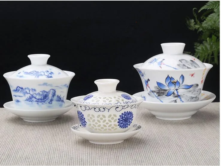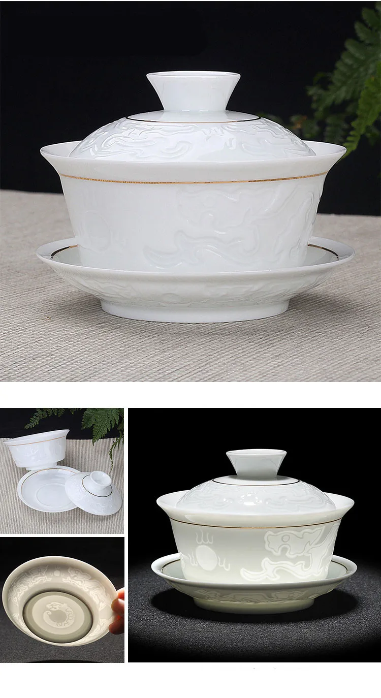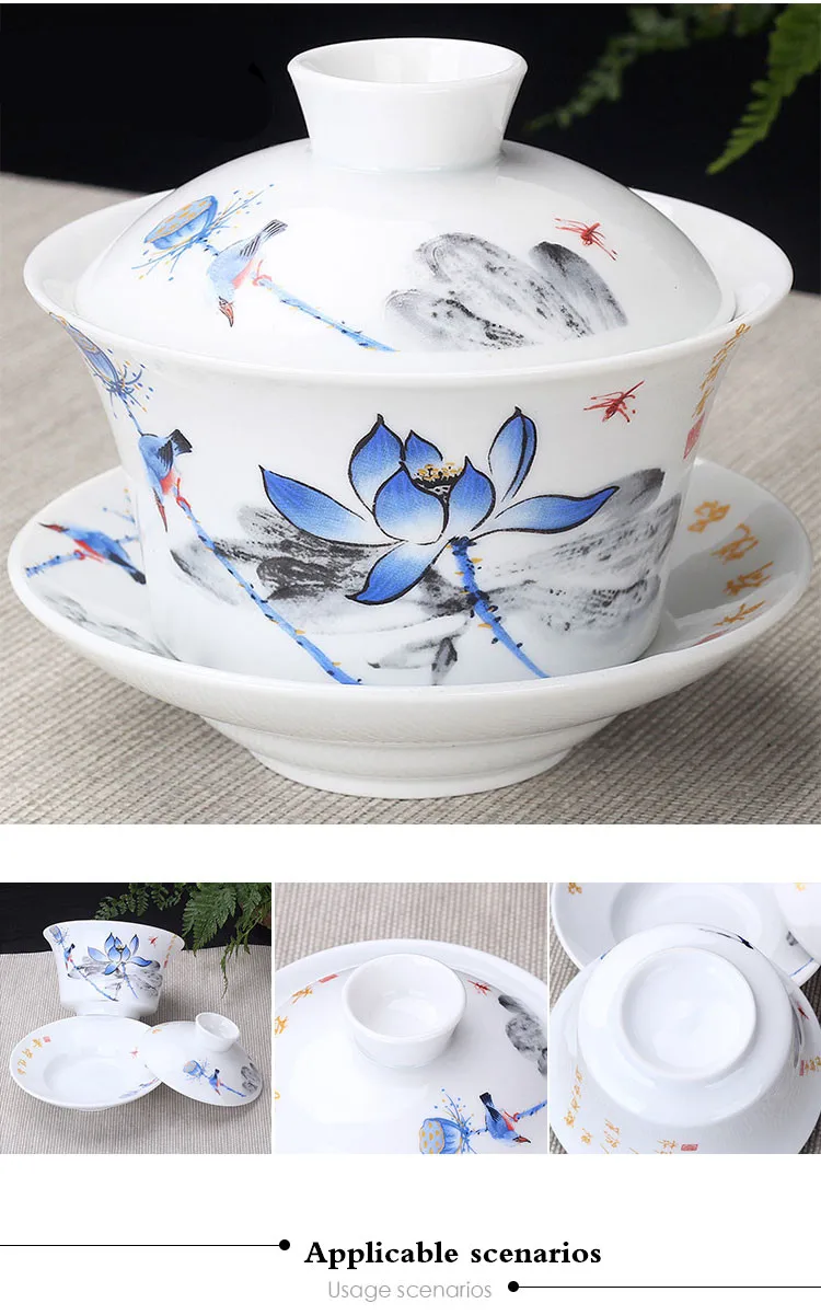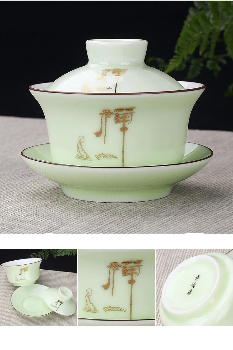Hand Painted Jade Porcelain Teaware, Peach Blossoms, Ceramic Gaiwan, Chinese Teaset Teaware, Tureen Sancai Tea Cup, Pu'er Kettle