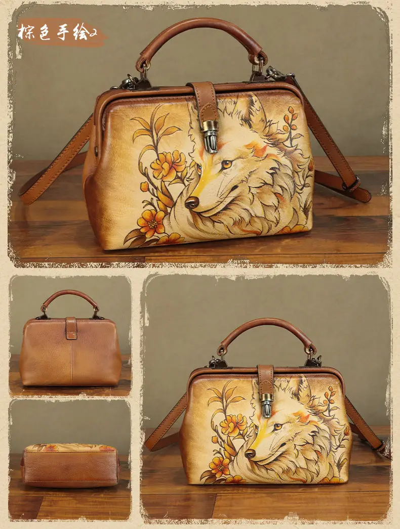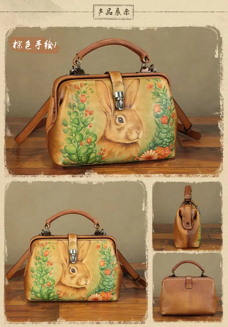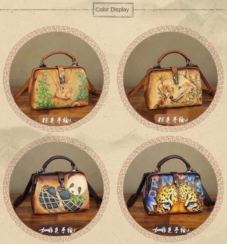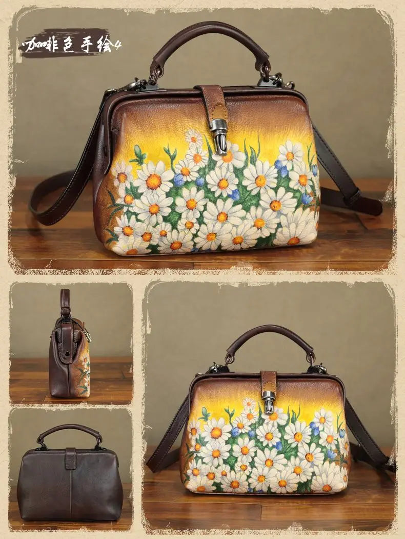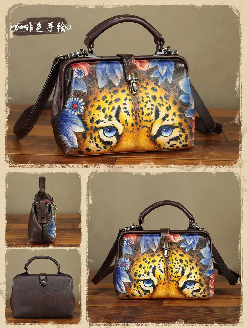 Hand-painted Leather Women's Handbags Small Crossbody Bag Women's Shoulder Bags Hand-2024 New First Layer Cowhide