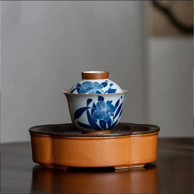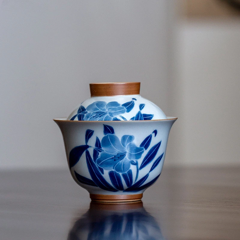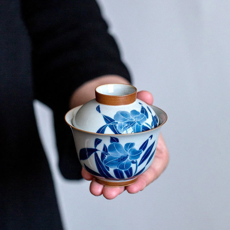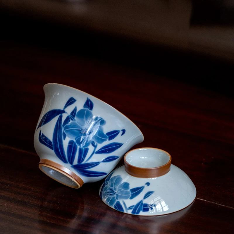 Hand-painted Orchid Gaiwan Chinese Style Cover Bowl Retro Antique Literati Ceramic Tea Making Bowl Handmade High Quality Tea Cup